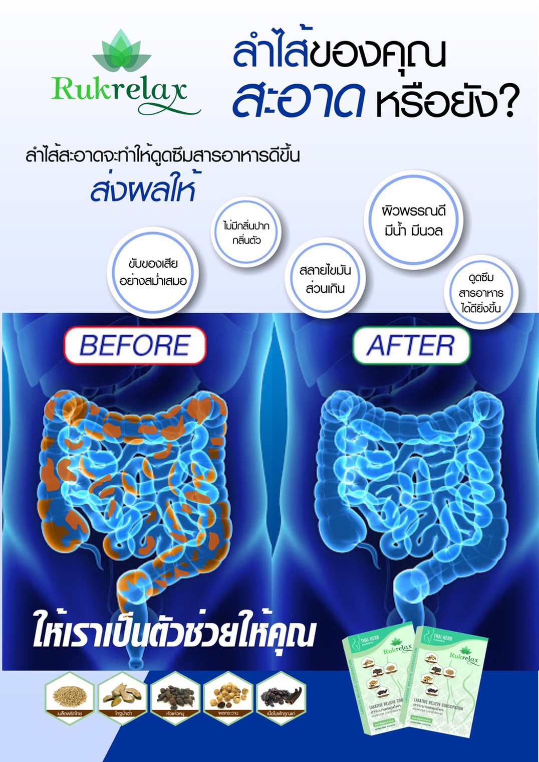 -ทานยาระบายสมุนไพร ตรารักรีแลกซ์ ก่อนนอน ครั้งละ 1-2 แคปซูล ทุกวันติดต่อกัน 1 เดือน