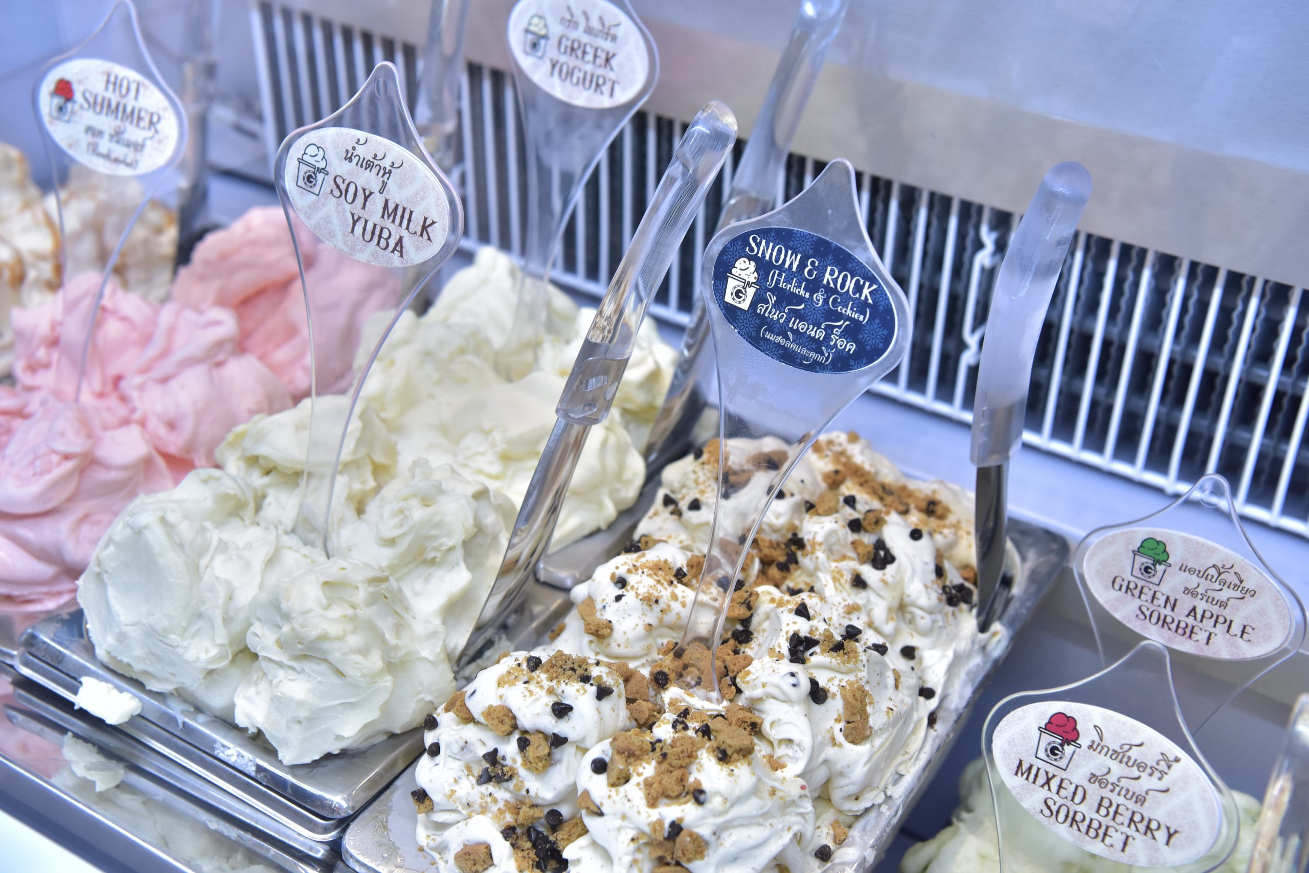 Justjela ไอศกรีมสูตรอิตาเลียนแท้ซึ่งเชฟเรียนมาจาก Carpigiani, Gelato University ประเทศอิตาลี อร่อยได้ไม่อ้วน ไอศกรีมไขมันต่ำ/ไขมัน 0% ทำจากวัตถุดิบธรรมชาติ 100% ไม่แต่งสีสังเคราะห์ ไม่มีนมผง ไม่ผสมน้ำมันพืช ไม่มีไขมันทรานซ์ ด้านในตัวไอศกรีมไม่มีเนื้อเค้ก เหมาะกับทุกเพศทุกวัยเด็กทานได้ผู้ใหญ่ทานดี, Ghee Gelato House ร้านเจลาโต้โฮมเมดดังย่านท่าเตียน ใช้วัตถุดิบจากธรรมชาติเนื้อไอศกรีมนุ่มเหนียวละลายยากเหมาะกับอากาศเมืองไทย รสชาติเข้มข้น พร้อมรสชาติกลิ่นอายไทยๆอย่าง รสมะพร้าวน้ำหอม, รสน้ำผึ้งมะนาว