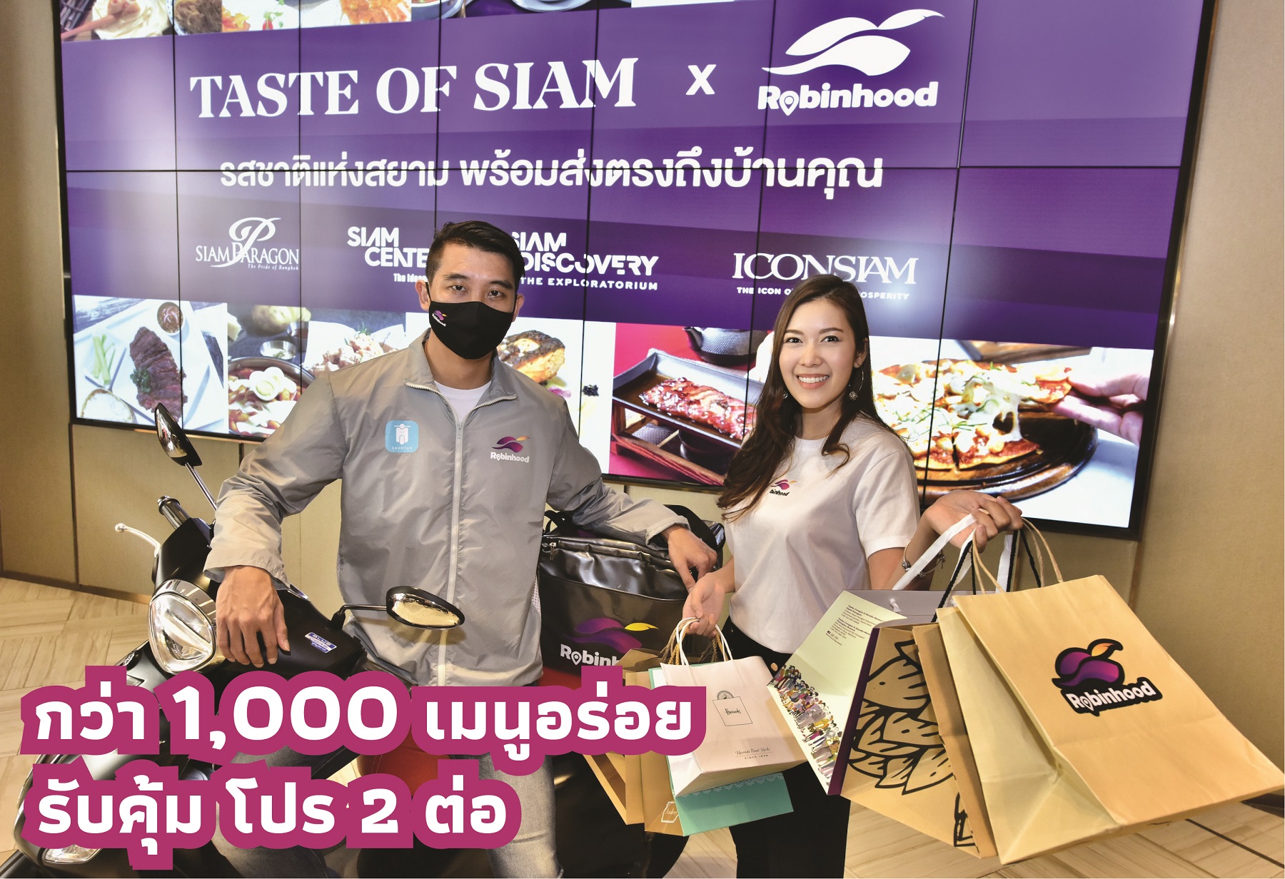 สำหรับแคมเปญ “Taste of Siam x Robinhood” คัดสรรกว่า 1,000 เมนูอร่อย จากสุดยอดร้านอาหารขนมและเครื่องดื่มยอดนิยม หลากหลายความอร่อยแบบคุณภาพ ด้วยร้านเมนูซิกเนเจอร์ระดับมิชลินจนถึงร้านโปรดที่ใครๆก็ติดใจ จากทั้ง 4 ศูนย์การค้า ทั้งสยามพารากอน สยามเซ็นเตอร์ สยามดิสคัฟเวอรี่ และไอคอนสยามขึ้นแพลตฟอร์มโรบินฮู้ด ส่งตรงรสชาติแห่งสยามถึงบ้าน พร้อมสร้างการรับรู้ควบคู่ไปกับโปรโมชั่นสุดคุ้มพิเศษเฉพาะแอปฯ โรบินฮู้ดเท่านั้น อาทิ ร้าน Tasty Congee & Noodle Wantun โจ๊กฮ่องกงระดับตำนานดีกรี Bib Gourmand สาขาแรกและสาขาเดียวในเมืองไทย, Four Seasons ต้นตำรับเป็ดย่างระดับโลก, Wang Jia Shaอาหารจีนสูตรกวางตุ้งแบบดั้งเดิม, บ้านขนิษฐา เดอะ เฮอริเทจ อาหารไทยต้นตำรับ, Tapas by Nan Charcoal Grill อาหารเสปนรสเลิศ,Guljak Tokpokki ร้านอาหารเกาหลียอดนิยม นอกจากนี้ยังมี Greyhound Café, Audrey Café, Haru Kappo และอีกมากมายให้ได้ลิ้มลอง