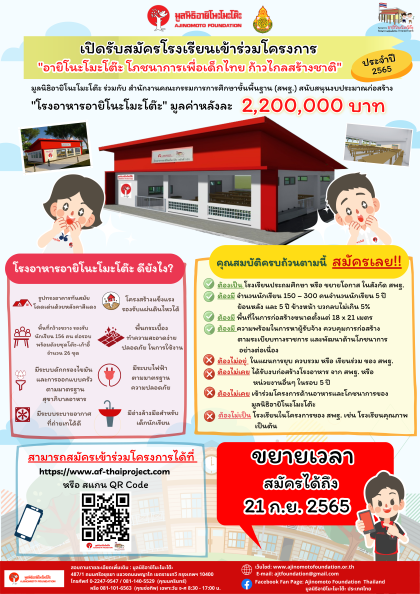 มูลนิธิอายิโนะโมะโต๊ะ ขยายเวลาเปิดรับสมัครโรงเรียนเข้