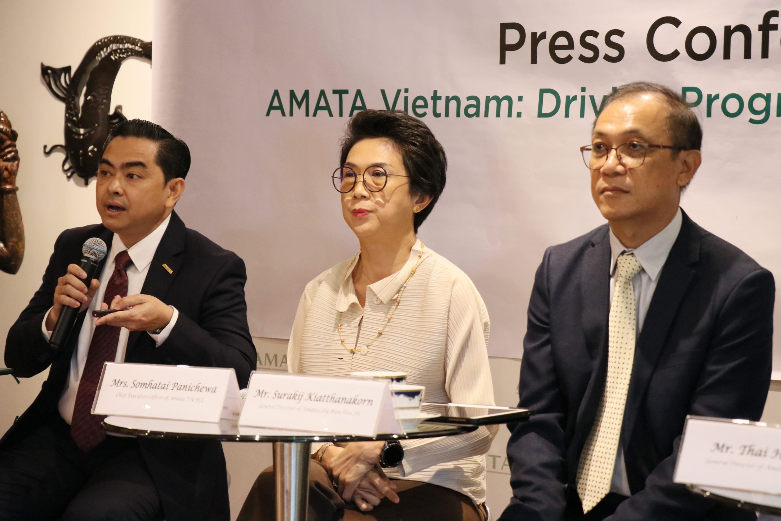 นางสมหะทัย พานิชชีวะ กรรมการและประธานเจ้าหน้าที่บริหาร บริษัท อมตะ วีเอ็น จำกัด (มหาชน) หรือ AMATAV เปิดเผยในงานแถลงข่าว “AMATA Vietnam: Driving Progress in 2024 and Beyond” แผนกลยุทธ์และภาพรวมการลงทุนในปี 2567 ว่าตลอดระยะเวลาเกือบ 30 ปีที่กลุ่มอมตะฯได้เข้าไปลงทุนที่เวียดนาม ซึ่งเป็นพื้นที่ลงทุนเป้าหมายสำคัญของนักลงทุนต่างชาติทั่วโลก   ซึ่งสะท้อนได้จากความสำเร็จของอมตะฯในการพัฒนาโครงการนิคมอุตสาหกรรม 3 แห่งและโครงการนิคมฯร่วมทุนกับพันธมิตรนานาชาติอีก  1 แห่ง ได้แก่ 1.นิคมฯอมตะซิตี้ เบียนหัว 2.นิคมฯอมตะซิตี้ ลองถั่น 3.นิคมฯอมตะซิตี้ ฮาลอง และ 4.นิคมฯ กว่างจิ (Joint Venture)  คิดเป็นมูลค่าลงทุนทั้งสิ้นกว่า 860 ล้านเหรียญสหรัฐ บนพื้นที่ดินที่ได้รับใบอนุญาติ 3,000 เฮกตาร์ (18,750 ไร่) ซึ่งปัจจุบันมีลูกค้าทั้งหมดกว่า 200 บริษัทคิดเป็นมูลค่าลงทุนมากกว่า 6,000 ล้านเหรียญสหรัฐ และทำให้เกิดการจ้างงานมากกว่า 60,000 คน