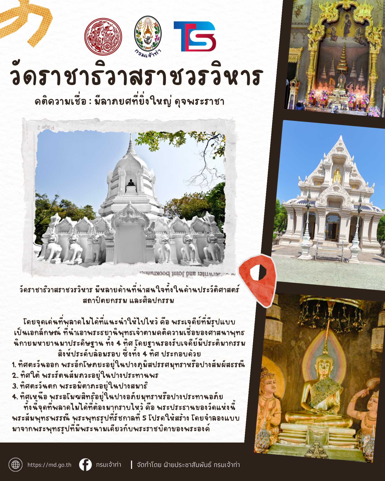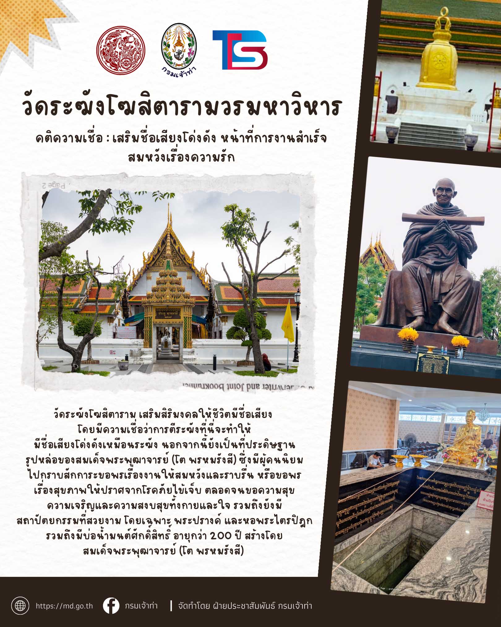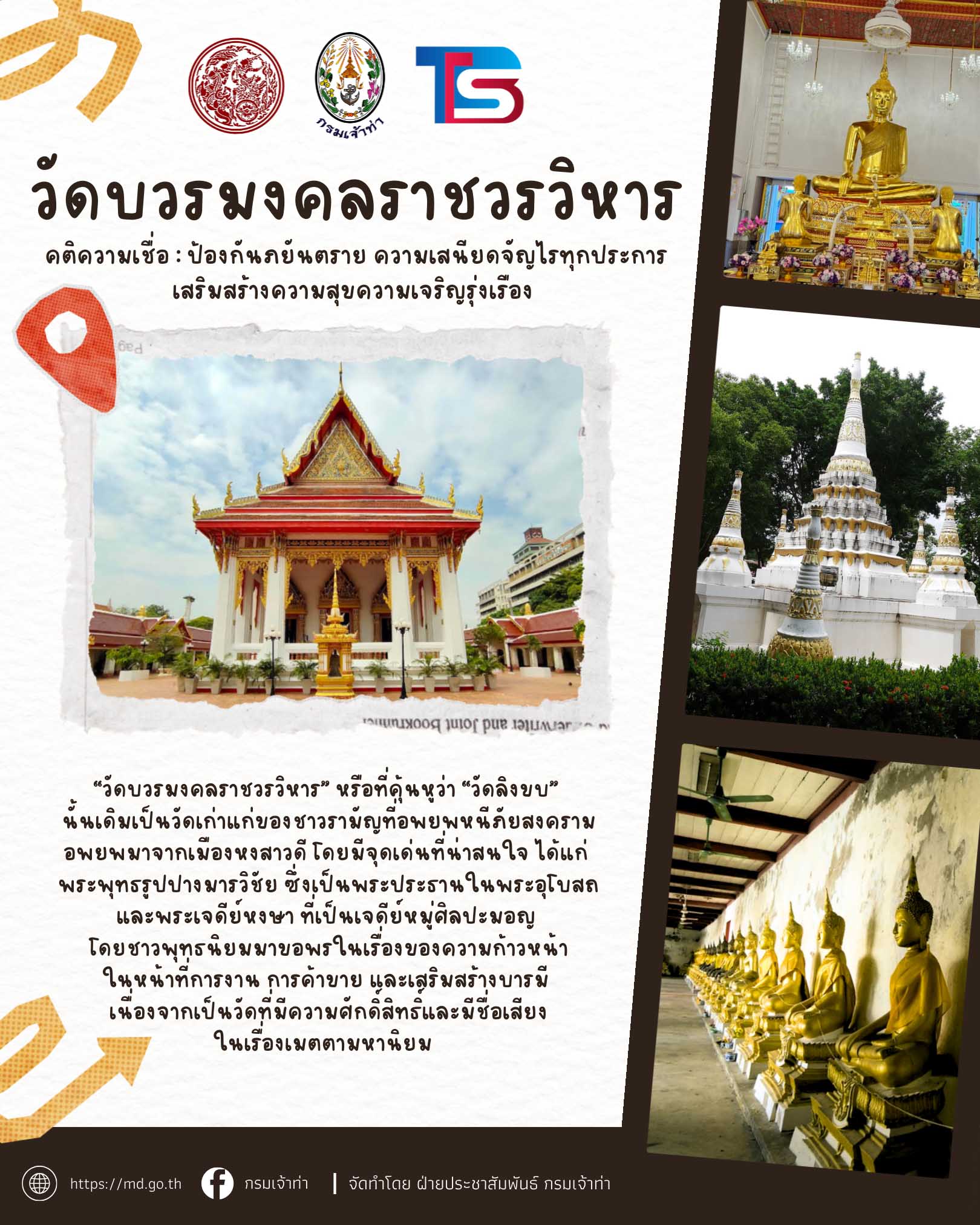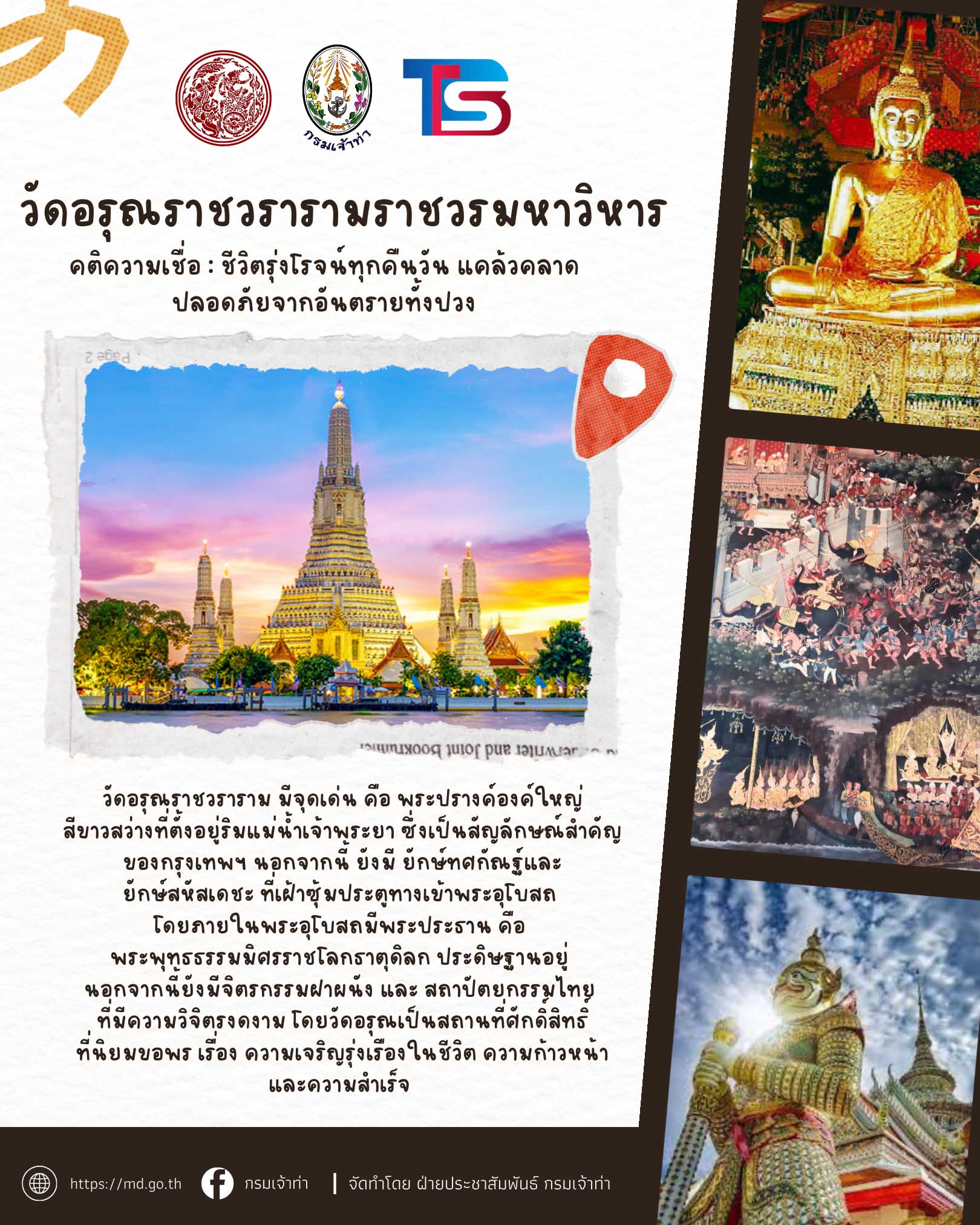 กระทรวงคมนาคมและกรมเจ้าท่า ร่วมกับบริษัทไทยสมายล์โบ้ท จัดโครงการ ” ล่องเรือไหว้พระ 9 วัด รับปีใหม่ 2569 ” เพื่อมอบเป็นของขวัญแก่พี่น้ องประชาชนโดยโครงการจะจัดขึ้ นในวันที่ 26 ธันวาคม 2568 (วันงานผู้ที่มาร่วมงานเช็คชื่ อพร้อมกันเวลา 06:00 – 07:30 น. ที่กรมเจ้าท่า)