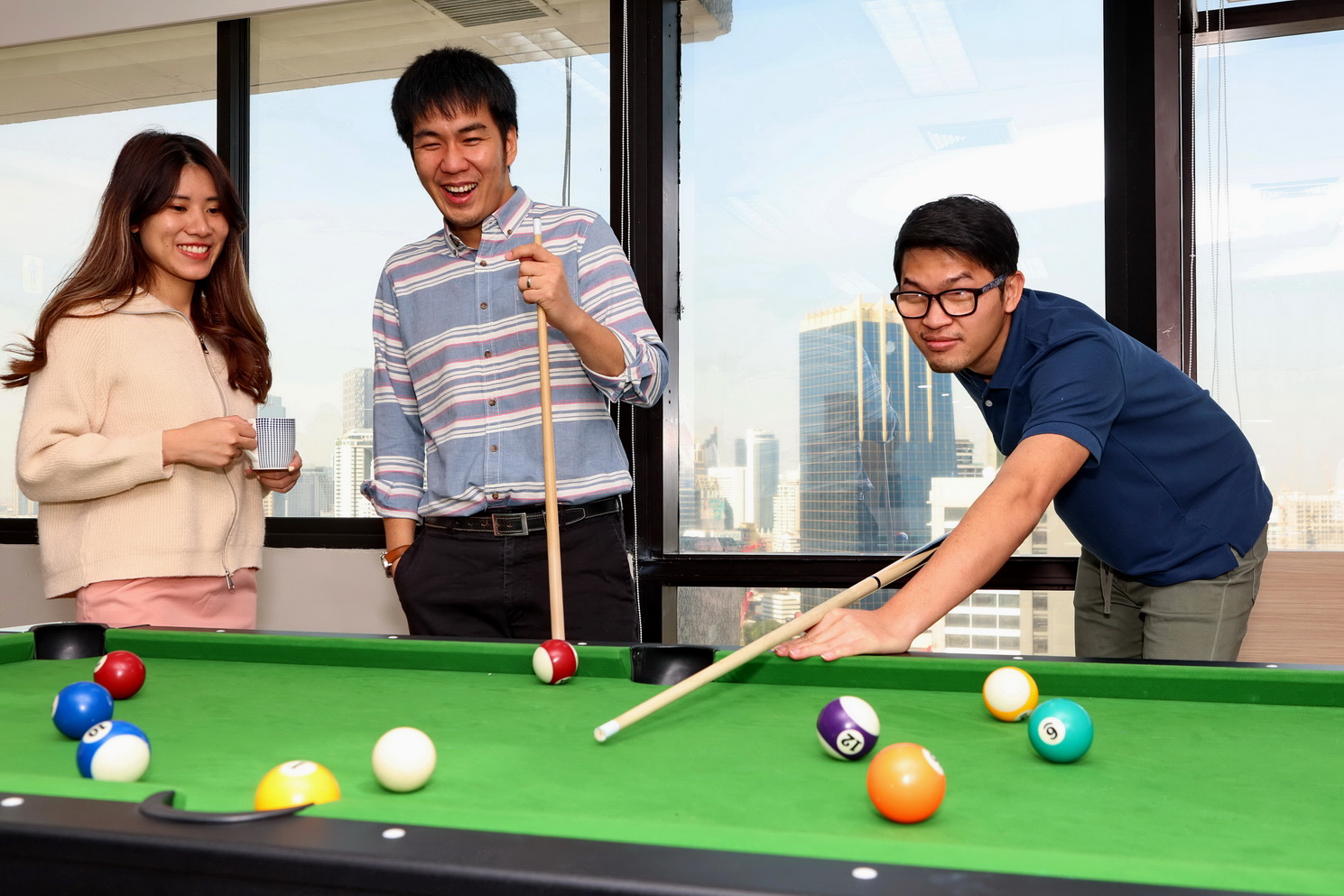 - Sharing Idea and experience – Challenge idea สร้างพื้นที่ให้พนักงานสามารถแลกเปลี่ยนความคิด ไม่ว่าจะเป็นห้องประชุม หรือ พื้นที่เปิดโล่งที่ให้แต่ละแผนกสามารถร่วมเสนอไอเดียใหม่ ๆ เพื่อเกิดผลงานที่มีคุณภาพมากยิ่งขึ้น