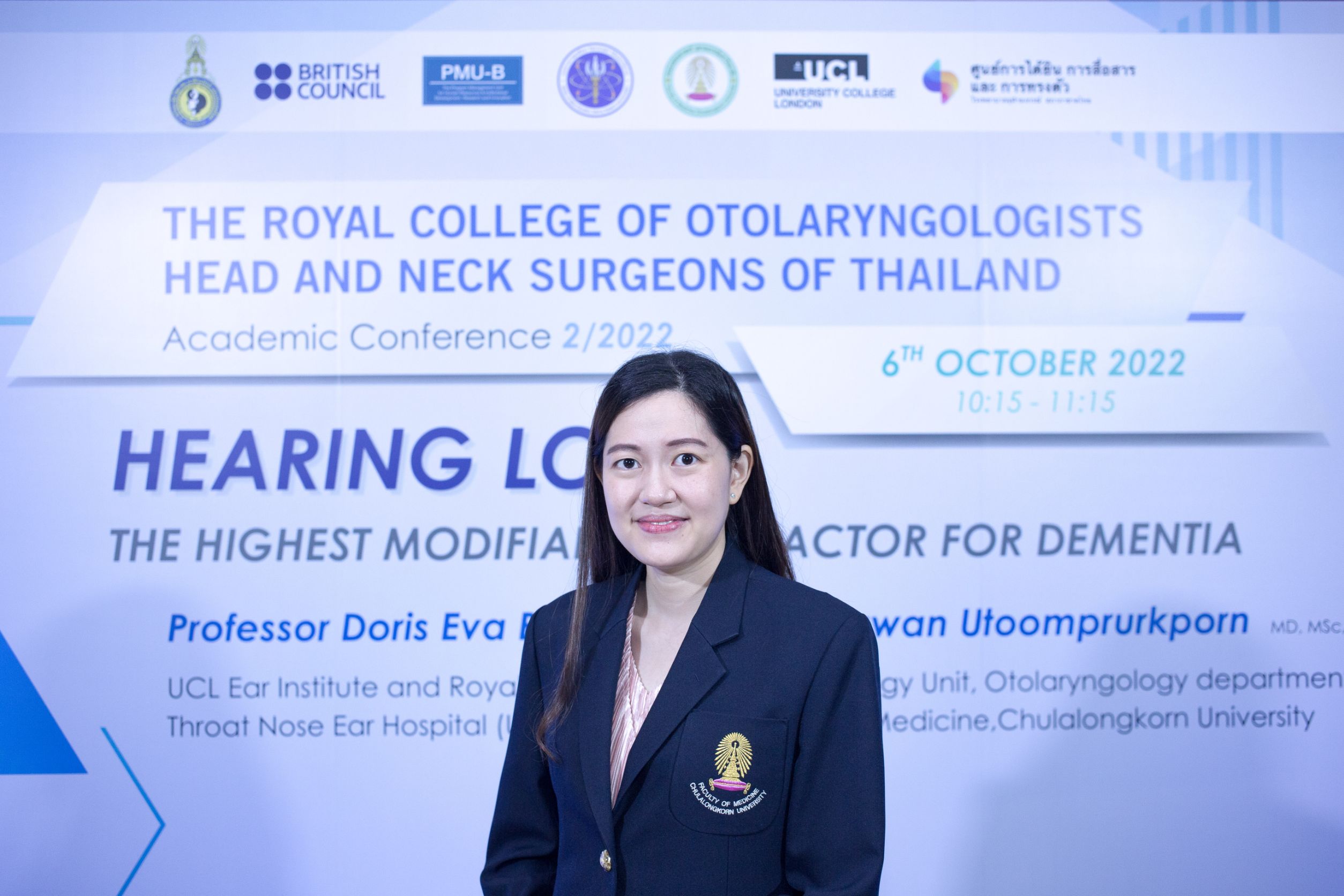 ศาสตราจารย์ Doris Bamiou จาก โรงพยาบาลหูคอจมูกแห่งชาติอังกฤษ Royal National Throat Nose Ear Hospital, ศูนย์หูแห่งมหาวิทยาลัยแห่งกรุงลอนดอน UCL Ear Institute ได้เข้าร่วมการบรรยายให้แก่ โสต ศอ นาสิกแพทย์กว่า 300 ชีวิต ในงานประชุม ประชุมวิชาการก้าวไกล จัดโดย ราชวิทยาลัยโสต ศอ นาสิกแพทย์แห่งประเทศไทย ครั้งที่ 2/2565 ในหัวข้อ “Hearing Loss – the Highest Modifiable Risk Factors for Dementia” เผยถึงความสำคัญของปัญหาการได้ยิน ซึ่งมีผลต่อสภาวะสมองเสื่อม เพราะหูเป็นอวัยวะรับเสียง แต่สมองเป็นอวัยวะที่ใช้ในการได้ยิน พร้อมกับเน้นย้ำว่าปัญหาการได้ยินและสมองเสื่อมจะมีจำนวนมากขึ้นเรื่อย ๆ และเป็นปัญหาด้านสาธารณสุขที่สำคัญที่ต้องเร่งวิจัยพัฒนาเพื่อสามารถให้บุคลากรสามารถจัดการให้ดีขึ้นได้ในอนาคต