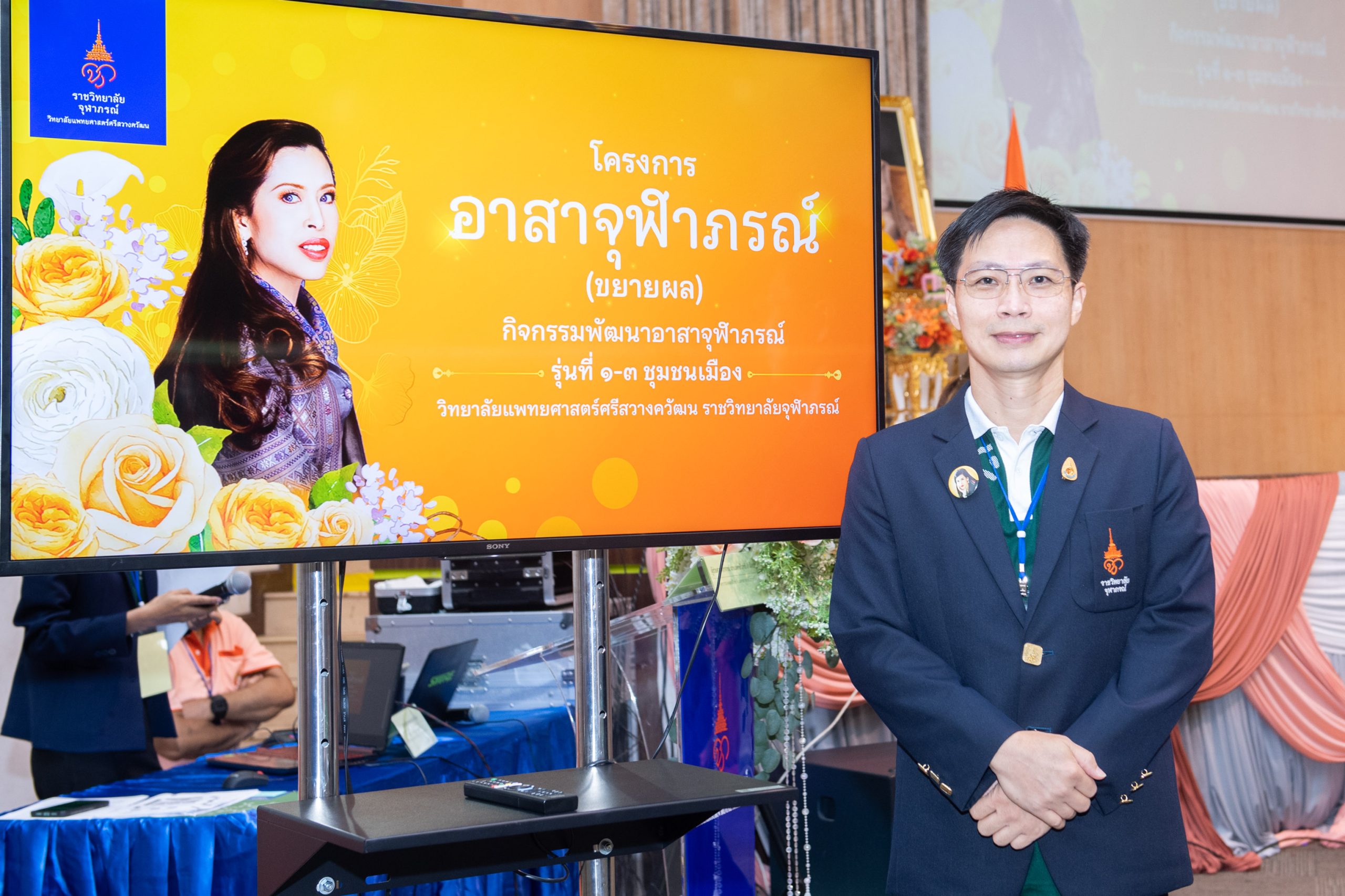ผู้ช่วยศาสตราจารย์ นายแพทย์วิสุทธิ์ ล้ำเลิศธน รักษาการรองคณบดีวิทยาลัยแพทยศาสตร์ศรีสวางควัฒน เป็นประธานเปิดโครงการอาสาจุฬาภรณ์ กล่าวว่า