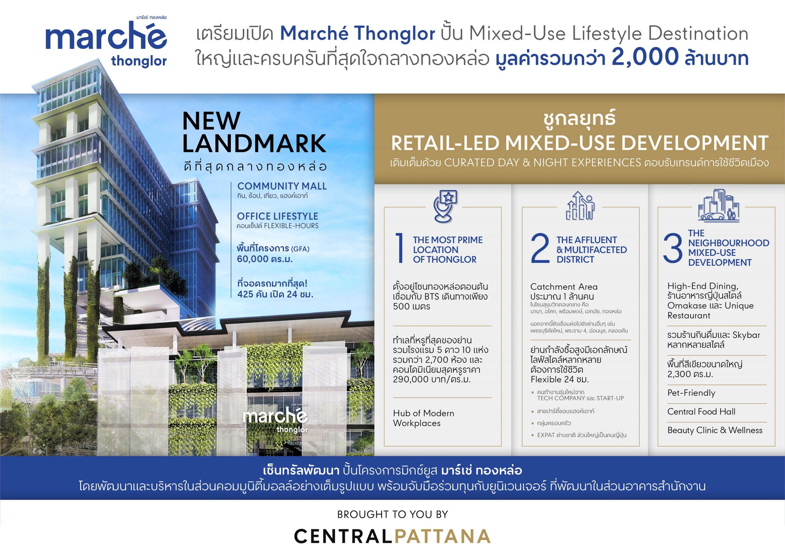 “เซ็นทรัลพัฒนา” เตรียมเปิด Marché Thonglor ปั้น Mixed-Use Lifestyle Destinationใหญ่และครบครันที่สุดใจกลางทองหล่อ มูลค่ารวมกว่า 2,000 ล้านบาท เติมเต็มด้วย Curated Day & Night Experiences ตอบรับเทรนด์การใช้ชีวิตเมือง