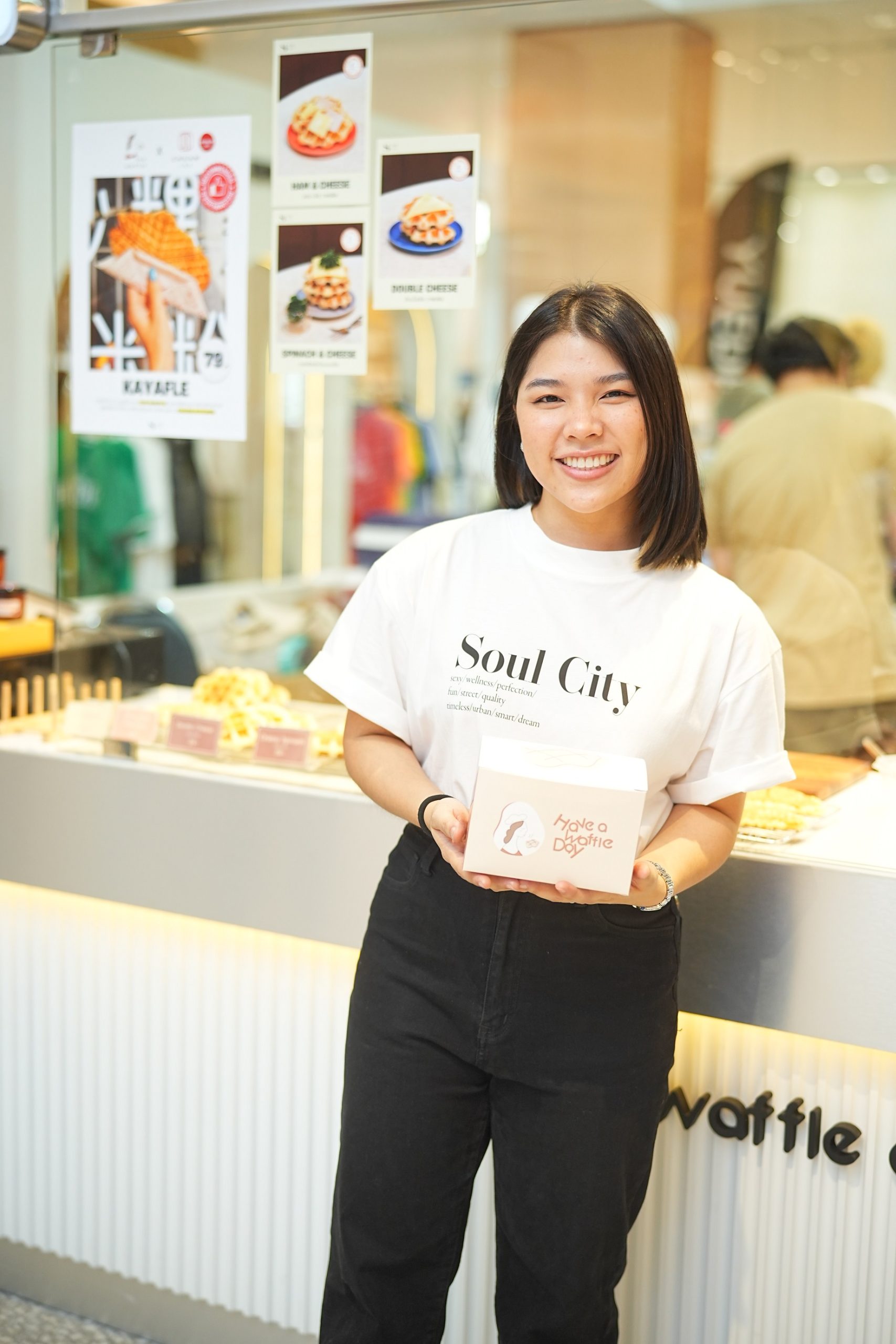 ด้าน ตูน รยากร พนิตนรากุล เจ้าของ The Waffle เล่าว่า “The Waffle เริ่มธุรกิจมาจากการเป็นแฟรนไชส์ขนาดเล็ก เปิดขายอยู่ตามสถานี BTS และ MRT ลูกค้าจะรู้จักเราจากกลิ่นหอมๆ ของวาฟเฟิลตามสถานี BTS มาปีนี้เราอยากเปิดร้านตามศูนย์การค้าเพื่อขยายกลุ่มลูกค้าให้ใหญ่ขึ้น เลยตัดสินใจ rebranding เพื่อให้เหมาะสมกับภาพลักษณ์ของเซ็นทรัล และเพื่อให้เข้ากับยุคสมัยและไลฟ์สไตล์คนรุ่นใหม่ สำหรับคอร์สนี้นอกเหนือจากเนื้อหาความรู้และประสบการณ์ ตูนยังได้มิตรภาพดีๆ และพลังบวกจากเพื่อนร่วมคลาส ตูนไม่ได้มองว่าเราได้ connection แต่มันคือ friendship มิตรภาพที่ดีมากกว่า เพราะเพื่อนทุกคนให้คำปรึกษากันและกัน แชร์ประสบการณ์ธุรกิจต่างๆ ทั้งด้านที่ Success และด้านที่ fail ซึ่งเราสามารถนำมาปรับใช้กับธุรกิจของเราได้จริง ทำให้เราได้อะไรในหลายๆด้านจากการมาเรียนคอร์สนี้ซึ่งมันคุ้มค่ามาก”