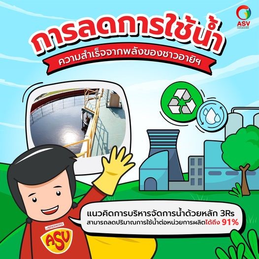 การเพิ่มประสิทธิภาพการใช้ทรัพยากรน้ำตลอดกระบวนการผลิตให้คุ้มค่าและเกิดประโยชน์สูงสุด ด้วยหลักการ 3Rs (Reduce, Reuse, Recycle) ขับเคลื่อนผ่านทุกกิจกรรมทางธุรกิจในทุกโรงงานและสถานประกอบการ มุ่งสู่การเป็น “โรงงานสีเขียว” ที่มีส่วนร่วมรักษาทรัพยากรน้ำและสิ่งแวดล้อมอย่างยั่งยืน โดยบริษัทฯ ได้นำเทคโนโลยีประสิทธิภาพสูงในการบำบัดน้ำที่เหลือจากกระบวนการผลิตให้มีคุณภาพที่สูงกว่าที่กฏหมายกำหนดก่อนปล่อยคืนสู่แหล่งน้ำตามธรรมชาติ รวมถึงการนำมาหมุนเวียนใช้ภายในโรงงานอีกด้วย ปัจจุบัน บริษัทฯ สามารถลดปริมาณการใช้น้ำต่อหน่วยการผลิตลงได้ถึง 91%