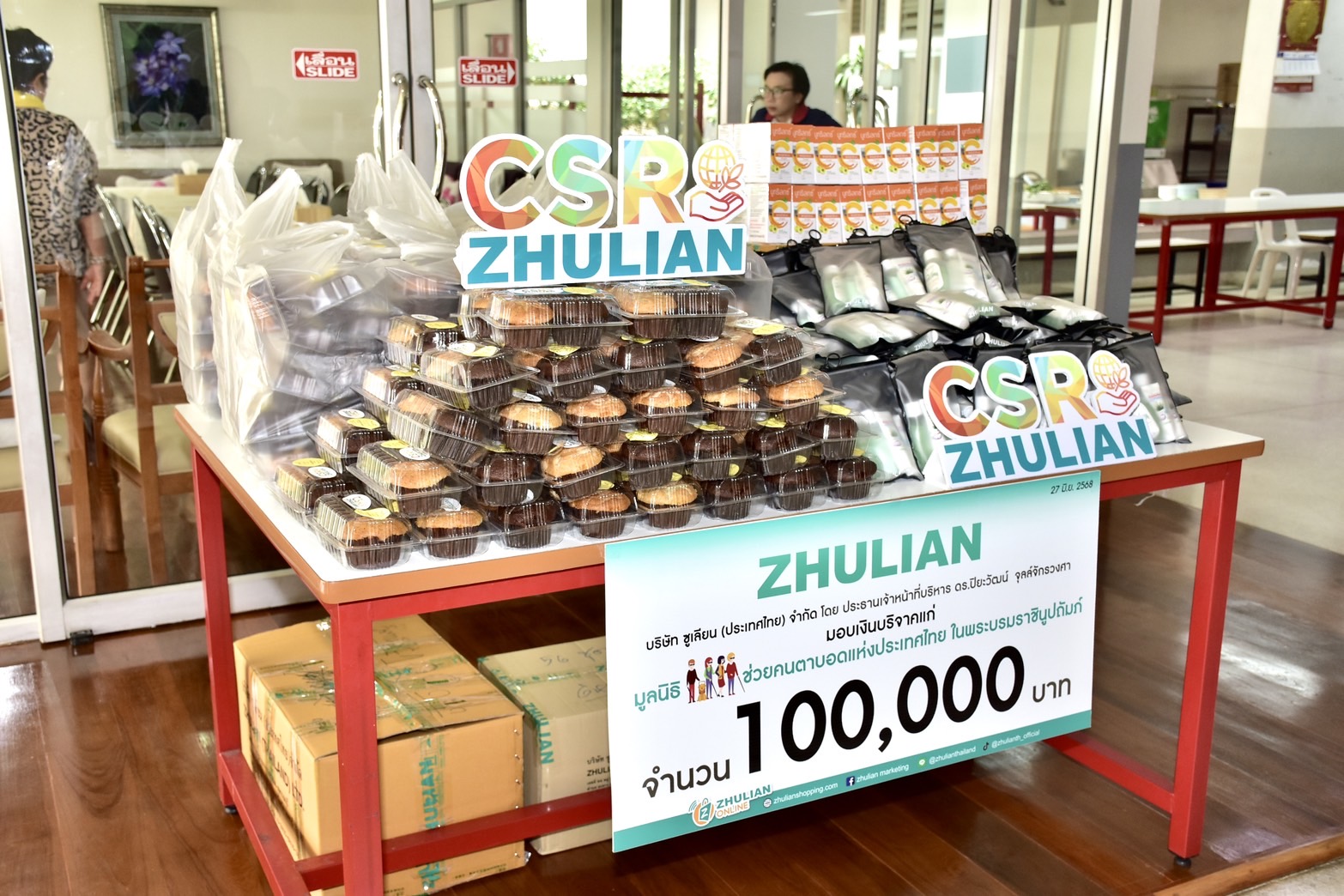 บริษัท ซูเลียน (ประเทศไทย) จำกัด เดินหน้าทำกิจกรรมเพื่อสังคมอย่างต่อเนื่อง ภายใต้โครงการ “Zhulian CSR” ล่าสุดร่วมส่งต่อความห่วงใยและแรงใจให้แก่ผู้พิการทางสายตา โดยมอบเงินสนับสนุนจำนวน 100,000 บาท พร้อมสิ่งของจำเป็น ให้แก่มูลนิธิช่วยคนตาบอดแห่งประเทศไทย ในพระบรมราชินูปถัมภ์ เพื่อสนับสนุนการดำเนินงานของมูลนิธิฯ ในการพัฒนาศักยภาพและคุณภาพชีวิตของผู้พิการทางสายตาทั่วประเทศ