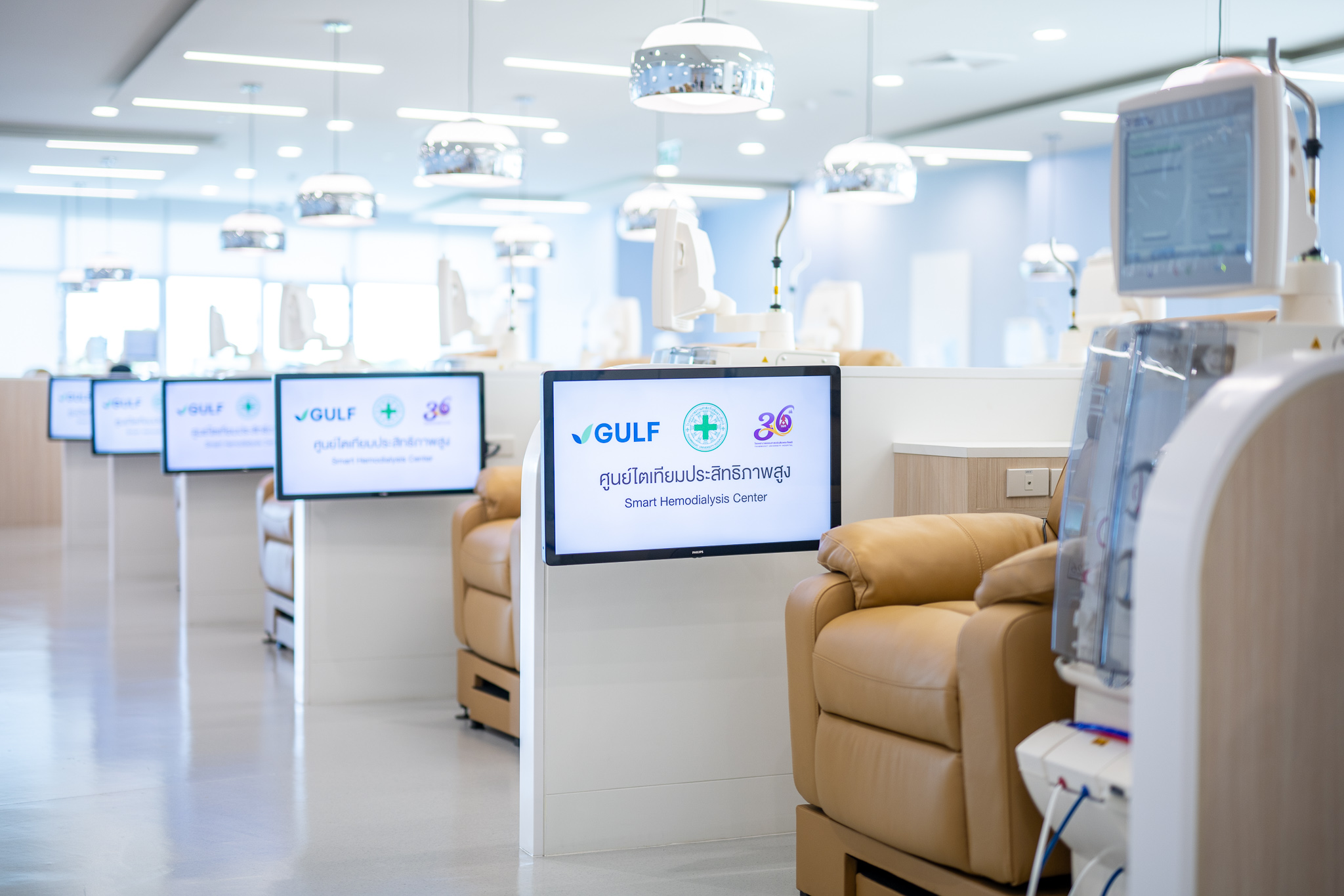 รพ.ธรรมศาสตร์เฉลิมพระเกียรติ พร้อมเครื่องฟอกไตแบบประสิทธิภาพสูงจำนวน 30 เครื่อง มากที่สุดในประเทศไทย เพิ่มโอกาสการเข้าถึงนวัตกรรมการฟอกไตประสิทธิภาพสูง (On-line Hemodiafiltration) ที่สามารถขจัดของเสียโมเลกุลใหญ่ ที่การฟอกไตปกติ ไม่สามารถทำได้ ลดการติดเชื้อ และยกระดับคุณภาพชีวิตของผู้ป่วยในระยะยาว รวมไปถึงลดยอดการเสียชีวิตของผู้ป่วยโรคไตในระดับประเทศ นอกจากนี้ด้วยระบบ Smart IT System ที่จัดเก็บข้อมูลของผู้ป่วยแบบระบบดิจิทัล เชื่อมต่อข้อมูลให้นักศึกษาแพทย์นำมาศึกษาและทำวิจัยได้ รวมถึงต่อยอดเป็นสถานที่การเรียนการสอนของโรงเรียนแพทย์ สอดคล้องกับพันธกิจของ GULF ที่มุ่งส่งเสริมด้านสาธารณสุข การศึกษา ควบคู่ไปกับการยกระดับคุณภาพชีวิตของคนไทย