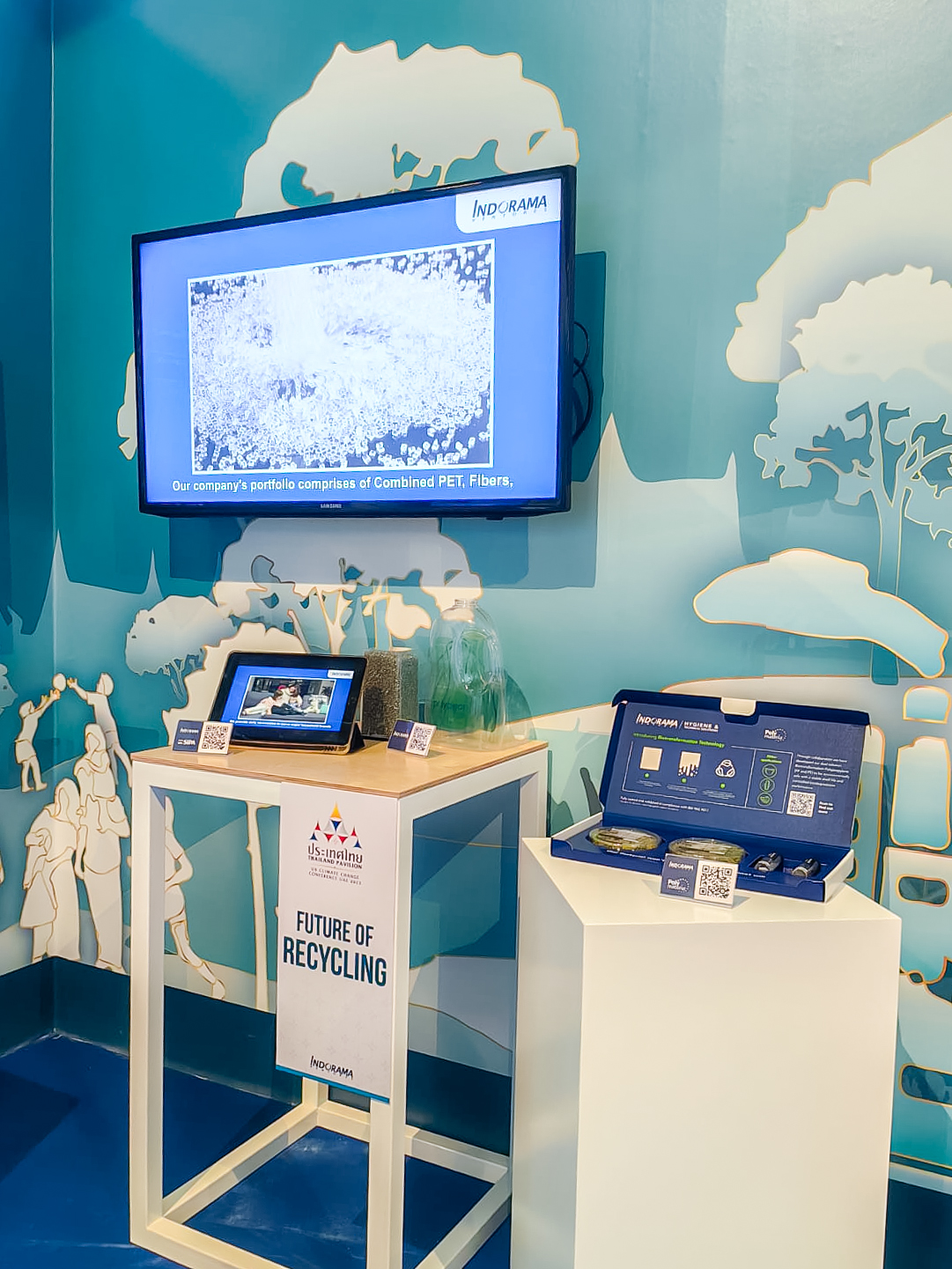 ภายใต้ความร่วมมือกับรัฐบาลไทย อินโดรามา เวนเจอร์ส ร่วมนำเสนอความมุ่งมั่นในการบรรลุเป้าหมายคาร์บอนสุทธิเป็นศูนย์ ณ Thailand Pavilion ภายในงาน COP28  โดยมีไฮไลท์สำคัญ ได้แก่ การลงทุนในนวัตกรรมร่วมกับบริษัทสตาร์ทอัพระดับโลก อาทิ  ความร่วมมือกับ SIPA ในการเปิดตัวขวดสปาร์คกลิ้งไวน์ที่ผลิตจาก PET แบบชั้นเดียว (monolayer) เป็นรายแรกของโลก และความร่วมมือกับ Polymateria ในการพัฒนาเทคโนโลยีไบโอทรานส์ฟอร์เมชั่น (biotransformation) สำหรับผลิตภัณฑ์เพื่อสุขอนามัย  การเน้นย้ำถึงความทุ่มเทของบริษัทฯ ในการดำเนินงานด้านความยั่งยืนและสภาพภูมิอากาศนั้น แสดงให้เห็นถึงความมุ่งมั่นของ