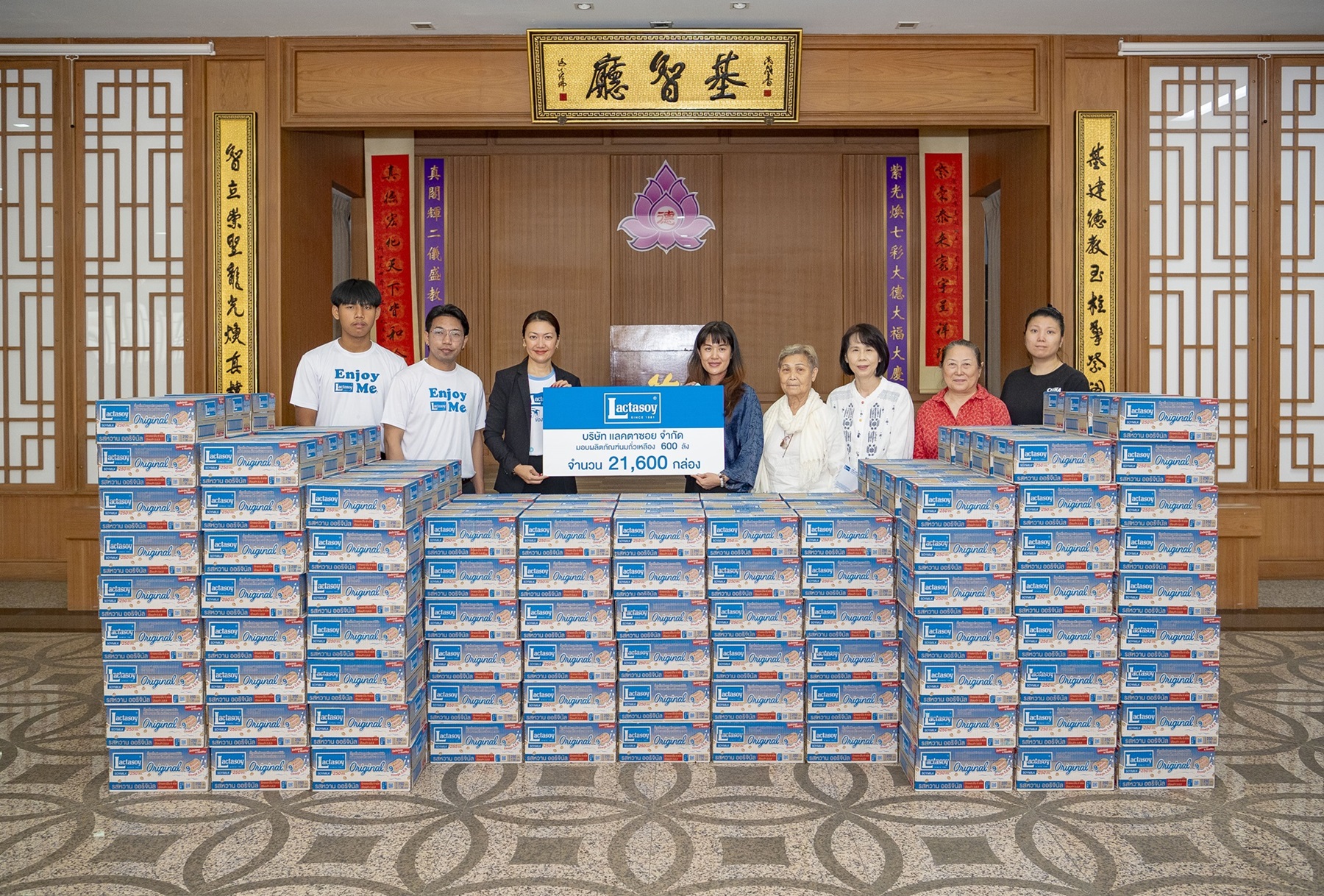 บริษัท แลคตาซอย จำกัด ผู้ผลิตและจำหน่ายผลิตภัณฑ์นมถั่วเหลืองแบรนด์ “แลคตาซอย” โดย นายสามารถ จิรพัฒนกุล กรรมการผู้อำนวยการ พร้อมด้วย นายประชา สิริวัฒนเกตุ และ นายตรีโรจน์ มหะนาวานนท์ รวมพลังน้ำใจมอบผลิตภัณฑ์นมถั่วเหลือง จำนวน 600 ลัง รวม 21,600 กล่อง ให้กับ สมาคมเผยแผ่คุณธรรม เต็กก่า จีจินเกาะ เขตคลองสาน กรุงเทพมหานคร และ สมาคมกุศลสงเคราะห์เชียงใหม่ จุดอมก๋อย อำเภอกมก๋อย จังหวัดเชียงใหม่ เพื่อนำไปแบ่งปันเป็นของขวัญให้กับเด็ก ๆ ในชุมชนรอบข้างได้อิ่มท้องและสุขภาพดีช่วงเทศกาลปีใหม่และวันเด็กประจำปี 2567 นับเป็นอีกหนึ่งพลังใจดี ๆ ที่แลคตาซอยได้ร่วมส่งต่อความรักความห่วงใยให้กับประชาชนคนไทย ตลอดทุกช่วงเทศกาลสำคัญ โดยมีทีมงานแลคตาซอยเป็นตัวแทนส่งมอบ