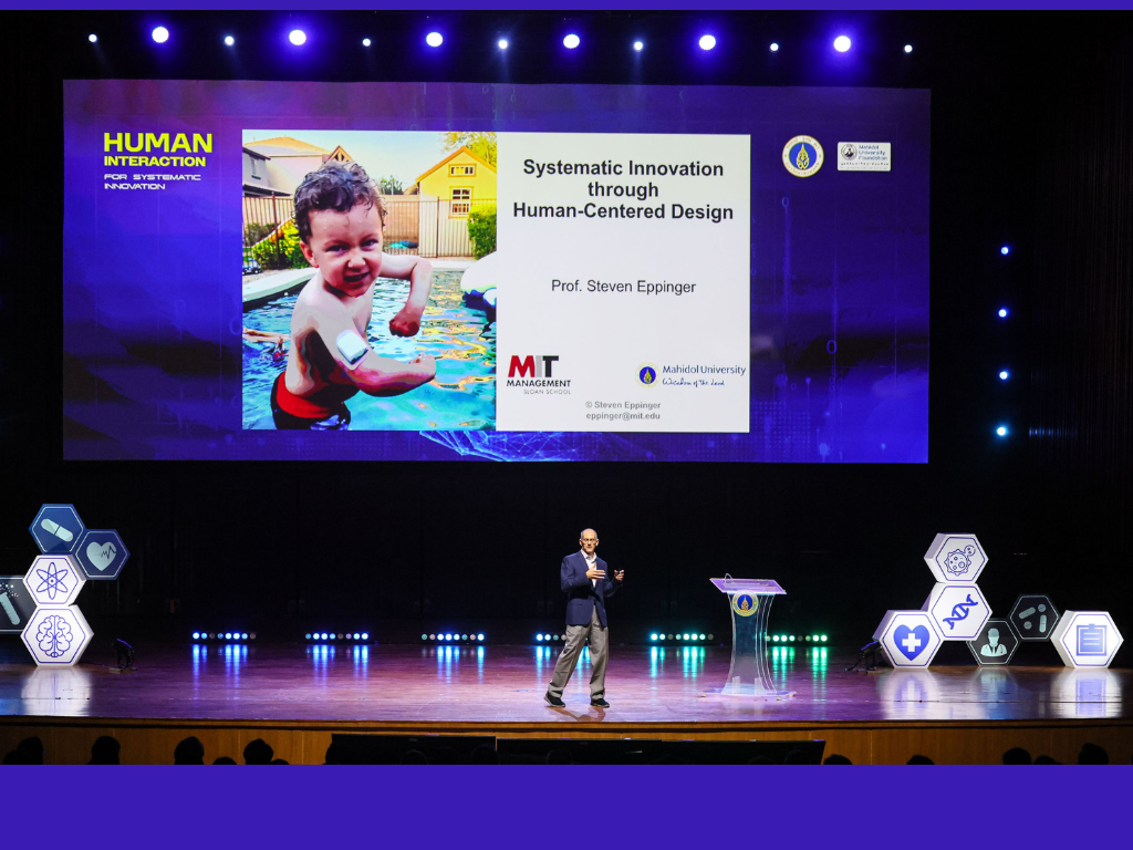 ประเทศไทยตระหนักดีว่าเราต้องการนวัตกรรมในการที่จะสามารถนำประเทศก้าวออกจากกับดักรายได้ปานกลาง เพื่อสร้างเศรษฐกิจที่เติบโตและยั่งยืน อย่างไรก็ตาม นวัตกรรมไม่ได้เกิดขึ้นอย่างง่ายดาย และนวัตกรรมที่สร้างออกมาก็ไม่ได้รับความสำเร็จได้โดยง่าย Prof. Steven Eppinger, Massachusetts Institute of Technology Sloan School of Management (ศจ. ดร. สตีเวน เอปพิงเกอร์) ชี้ให้เห็นว่า นวัตกรรมจะสำเร็จได้นั้นต้องตอบโจทย์ครบทั้ง 3 ข้อ คือ ตอบสนองความต้องการของคน (People Desirable) โซลูชันนั้นต้องใช้ได้จริง (Solution Feasible) และต้องนำมาต่อยอดในเชิงธุรกิจได้ (Business Viable) สิ่งนี้จะเกิดขึ้นได้ต้องอาศัยการฟังและเข้าใจความต้องการของคนเท่านั้น จึงได้นำเสนอแนวคิด Systematic Innovation through Human-Centered Design ซึ่งเป็นกระบวนการ Design Thinking ที่ให้ความสำคัญกับคน ไม่ว่าจะผ่านการฟัง สังเกต แล้วนำไปผ่านกระบวนการคิด ทดสอบแนวคิด รับฟังความคิดเห็น เพื่อนำมาปรับเป็นนวัตกรรมที่ตอบสนองความต้องการ เป็นโซลูชันที่ดีขึ้น และตอบโจทย์เชิงธุรกิจ พร้อมทั้งเน้นย้ำถึงโซลูชันที่เป็นนวัตกรรมใหม่ ไม่จำเป็นต้องเป็นของใหม่ แต่ต้องเป็นสิ่งที่ดีกว่าเดิม อย่างไรก็ตาม ต่อให้มีเทคโนโลยีมาช่วย สิ่งที่ปฏิเสธไม่ได้เลยคือการคิด กว่าจะได้นวัตกรรม ก็ต้องผ่านการคิดมาแล้วไม่รู้กี่ครั้ง และกว่านวัตกรรมนั้นจะสำเร็จ ใช้ได้จริง ก็ต้องผ่านการทดลองและล้มเหลวอีกมากมาย