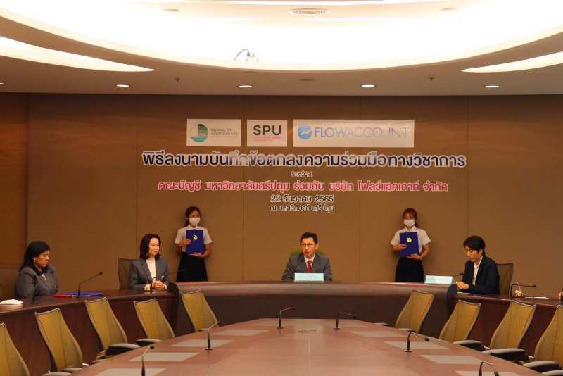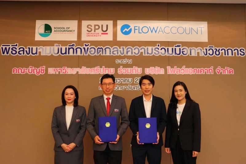 คณะบัญชี มหาวิทยาลัยศรีปทุม จัดให้มีพิธีลงนามบันทึกข้อตกลงความร่วมมือทางวิชาการ ระหว่างมหาวิทยาลัยศรีปทุม และ บริษัท โฟลว์แอคเคาท์ จำกัด (มหาชน) โดย ผศ.ดร.วิรัช เลิศไพฑูรย์พันธ์ รองอธิการบดี มหาวิทยาลัยศรีปทุม, ผศ.ดร.ฐิตาภรณ์ สินจรูญศักดิ์ คณบดีคณะบัญชี SPU กับ นายกฤษฎา ชุตินธร กรรมการผู้มีอำนาจ บริษัท โฟลว์แอคเคาท์ จำกัด และนางสาวณัฎ ศรีวรกุล ผู้จัดการฝ่ายหลักสูตรฝึกอบรม ร่วมลงนามบันทึกข้อตกลงความร่วมมือทางวิชาการ (MOU) ร่วมกัน เพื่อส่งเสริมและสนับสนุนด้านการเรียนการสอนเกี่ยวกับการใช้โปรแกรมบัญชีออนไลน์สำหรับนักศึกษา ณ ห้องบอร์ดรูม ชั้น 14 อาคาร 11 มหาวิทยาลัยศรีปทุม กทม.(บางเขน) เมื่อเร็วๆนี้
