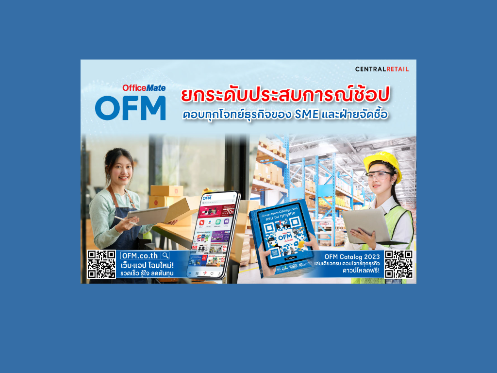 • เปิดตัวเว็บ-แอป โฉมใหม่ www.ofm.co.th และ OFM Mobile Application ผู้ช่วยทุกธุรกิจช้อปติดสปีด อัพเกรดประสบการณ์ช้อปออนไลน์สู่มิติใหม่ ภายใต้คอนเซปต์ “มีครบ จบไว สั่งง่าย ได้เร็ว” ให้ SME ค้นหาสินค้าเพื่อธุรกิจมากกว่าแสนรายการได้อย่างง่ายดายและรวดเร็ว ด้ออฟฟิศเมท ยกระดับประสบการณ์ช้อปรับปี 2023 ตอบทุกโจทย์ธุรกิจ ของ SME และฝ่ายจัดซื้อ ดาวน์โหลดฟรี แคตตาล็อกเล่มใหม่ ให้คุณง่ายกับการช้อปปิ้ง พร้อมเปิดตัว เว็บ-แอป โฉมใหม่ รวดเร็ว รู้ใจ ช่วยธุรกิจลดต้นทุนวนลดให้ช้อปคุ้มทุกวัน และบริการจัดส่งฟรีในวันทำการถัดไปเพียงช้อป 499.-* ตามกำหนด