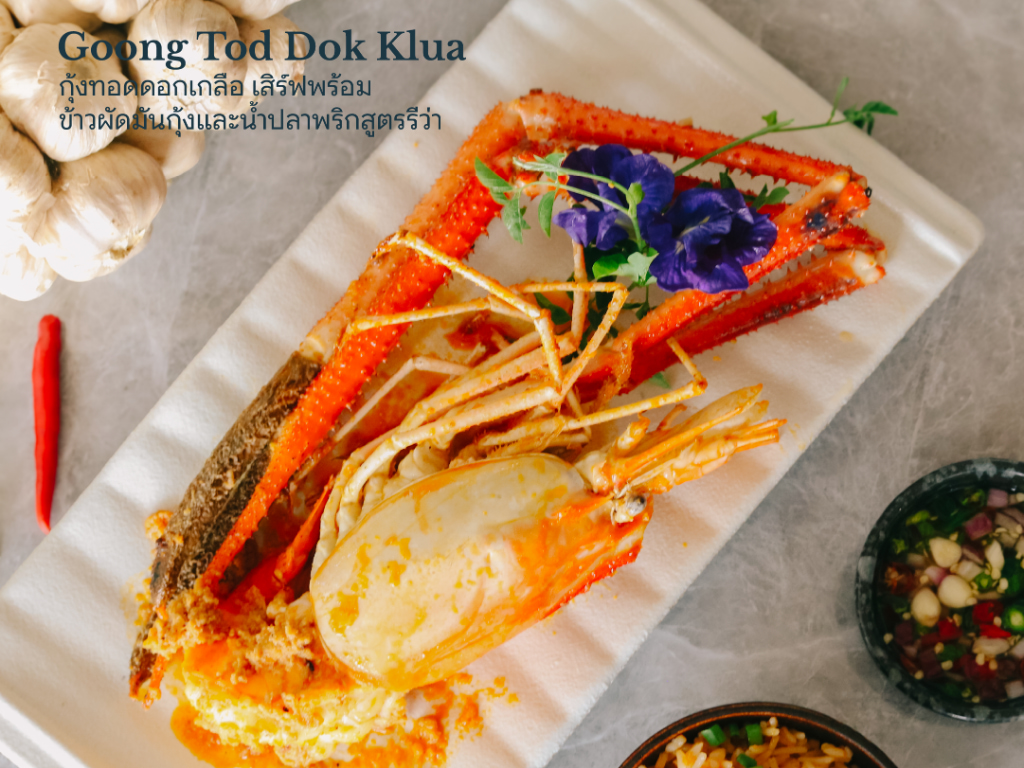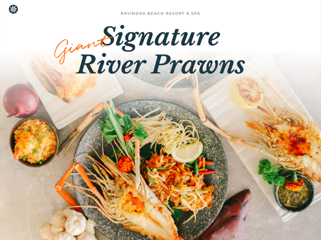 เมนู “Signature Giant River Prawns” พร้อมให้บริการ ที่ ห้องอาหารรีวา บีช เรสเตอรองต์ โรงแรมราวินทรา บีช รีสอร์ท แอนด์ สปา วันนี้ ถึง 31 มีนาคม 2569 เวลา 13.00 ถึง 21.30 น.