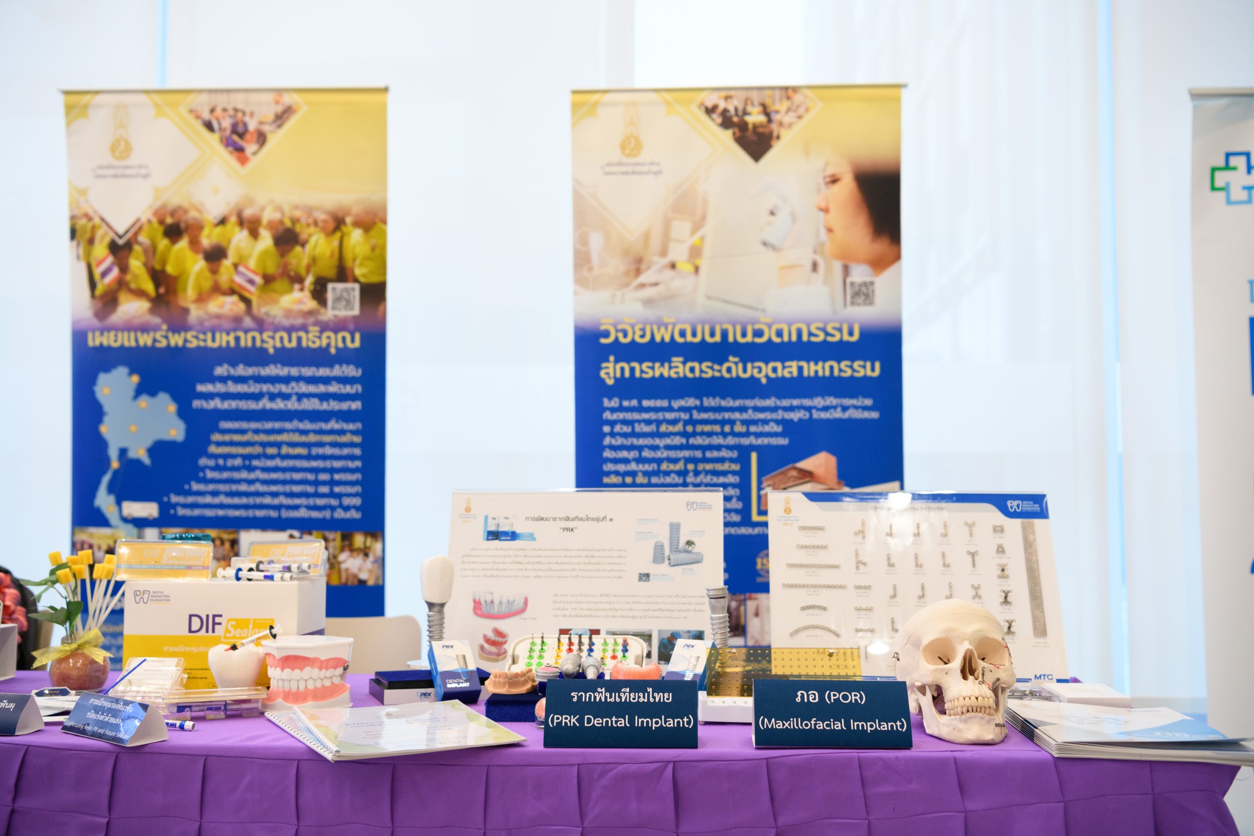 ทั้งนี้ มูลนิธิทันตนวัตกรรม ในพระบรมราชูปถัมภ์ ดำเนินงานวิจัย พัฒนา คิดค้นผลิตนวัตกรรม เครื่องมือ วัสดุ อุปกรณ์ ยา และเวชภัณฑ์ ตลอดจนงานต่าง ๆที่เกี่ยวข้องกับงานทันตกรรม สร้างโอกาสให้สาธารณชนได้รับประโยชน์จากการวิจัย และพัฒนาทางทันตกรรมที่ผลิตขึ้นใช้ในประเทศ และนำไปสนับสนุนกิจกรรม การออกบริการประชาชน ของหน่วยทันตกรรมพระราชทานในพระบาทสมเด็จพระเจ้าอยู่หัว สนองพระราชกระแส ด้านทันตสาธารณสุข ตลอดจนทำหน้าที่เผยแพร่พระมหากรุณาธิคุณ พระบาทสมเด็จพระปรมินทรมหาภูมิพลอดุลยเดช บรมนาถบพิตร ที่มีต่อพสกนิกรด้านทันตสาธารณสุข