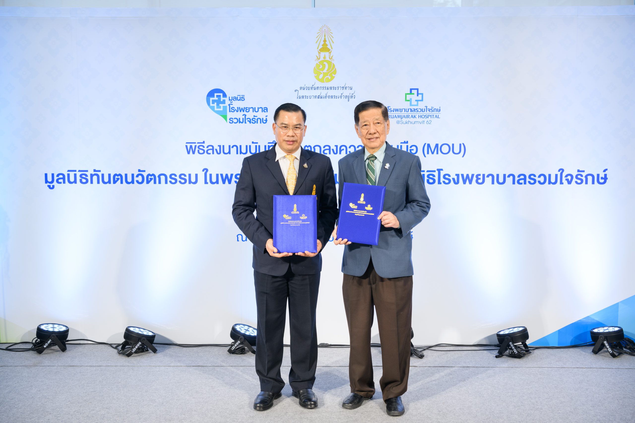 โรงพยาบาลรวมใจรักษ์ @สุขุมวิท 62 ในฐานะผู้ก่อตั้งมูลนิธิโรงพยาบาลรวมใจรักษ์ นำโดย นพ. สุนทร ศรีทา ผู้อำนวยการโรงพยาบาลรวมใจรักษ์ และ นายประกิต อภิสารธนรักษ์ ประธานกรรมการมูลนิธิโรงพยาบาลรวมใจรักษ์ ร่วมลงนามบันทึกข้อตกลงความร่วมมือ (MOU) กับ มูลนิธิทันตนวัตกรรม ในพระบรมราชูปถัมภ์ โดยมีศาสตราจารย์ (พิเศษ) ทันตแพทย์หญิง ท่านผู้หญิงเพ็ชรา เตชะกัมพุช ประธานมูลนิธิทันตนวัตกรรม ในพระบรมราชูปถัมภ์ และ นายวรวุฒิ กุลแก้ว เลขาธิการมูลนิธิฯ ร่วมลงนามในพิธี พร้อมเยี่ยมชมโรงพยาบาลรวมใจรักษ์และบูธนำเสนอนวัตกรรมของทางมูลนิธิ อาทิ นวัตกรรมอาหารสำหรับผู้ป่วยมะเร็งช่องปาก “เจลลี่โภชนา” , นวัตกรรมน้ำลายเทียมชนิดเจล “วุ้นชุ่มปาก” เป็นต้น โดยความร่วมมือในครั้งนี้มีวัตถุประสงค์ เพื่อร่วมวิจัยและพัฒนานวัตกรรมสนับสนุนงานทางด้านการแพทย์ ซึ่งมุ่งหวังให้ประชาชนได้รับประโยชน์ในการให้บริการทางด้านทันตกรรมที่มีประสิทธิภาพและความสะดวกสบายมากยิ่งขึ้น ทั้งนี้พิธีลงนามบันทึกข้อตกลงความร่วมมือ (MOU) จัดขึ้น ณ ชั้น G โรงพยาบาลรวมใจรักษ์ @สุขุมวิท 62 เมื่อเร็วๆ นี้