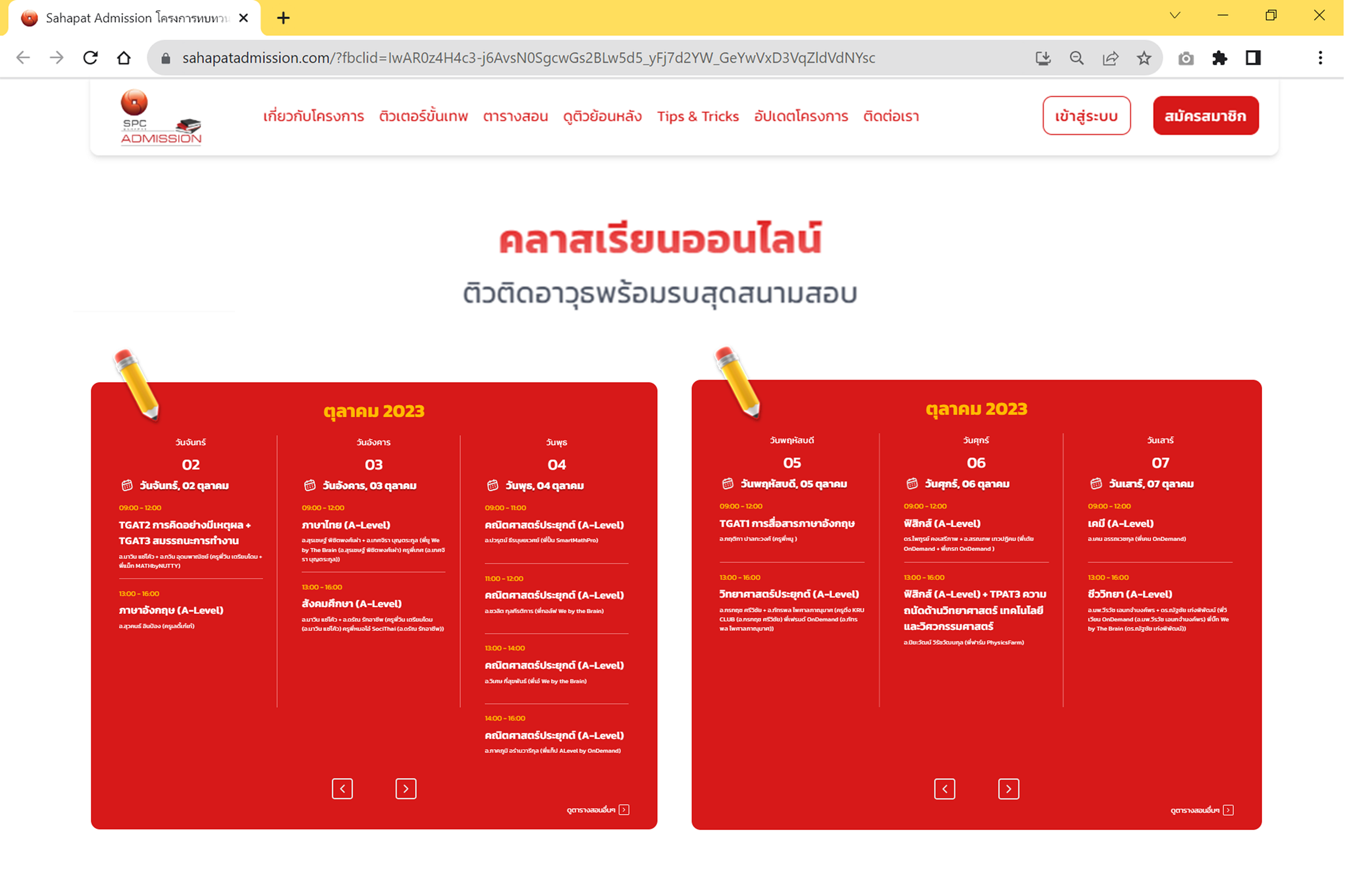 น้อง ๆ นักเรียนและโรงเรียนที่ยังไม่ได้สมัครเข้าร่วมโครงการติวฟรีของสหพัฒน์แอดมิชชั่น ครั้งที่ 26 ยังสมัครกันได้ที่ www.sahapatadmission.com เพื่อจะได้ไม่พลาดเข้าร่วมติวสดออนไลน์ต้นเดือนตุลาคมนี้ และติดตามข่าวสารข้อมูลโครงการเพิ่มเติมได้ทาง FB: Sahapat Admission https://www.facebook.com/SahapatAdmission หรือ โทร. 064-163-3449, 085-869-6252