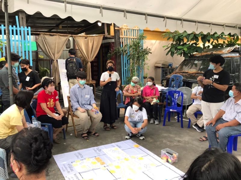 นักศึกษาและคณาจารย์ คณะสถาปัตยกรรมศาสตร์ มหาวิทยาลัยศรีปทุม เรียนกับตัวจริง ประสบการณ์จริง สัปดาห์นี้ลงพื้นที่คลองสานเก็บข้อมูลเพื่อการออกแบบและพัฒนาชุมชน พื้นที่ใต้ต้นไม้ใหญ่ ในพื้นที Site “สวนสาน” หน้าร้านกาแฟ DeepRoot Cafe’ เป็นตำแหน่งการนัดพบปะชุมชนอีกครั้ง รอบนี้มีคนในชุมชนมาร่วมงานหลาย Generation อย่างเห็นได้ชัด โดยเฉพาะผู้สูงอายุ และ เด็ก (คาดว่าวัยกลางคนน่าจะวุ่นวายอยู่กับการทำงานหาเลี้ยงครอบครัว) เหมือนครอบครัวขนาดใหญ่มารวมตัวกัน อบอุ่นดี