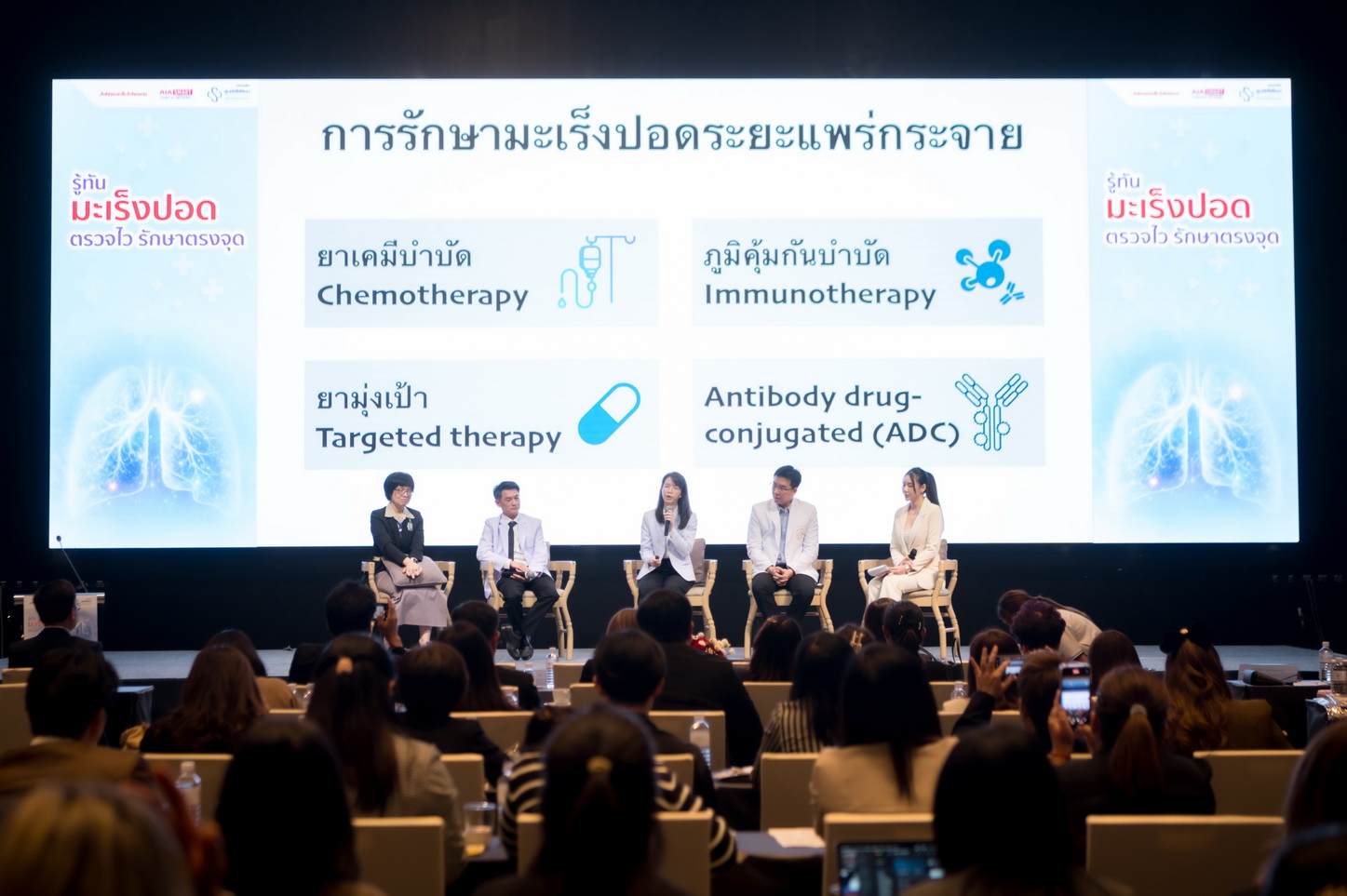 สำหรับการเสวนาในครั้งนี้ ทีมแพทย์เฉพาะทางได้ให้ความรู้ที่ครอบคลุมตั้งแต่แนวทางการรับมือมะเร็งปอดแบบครบวงจร โดยเริ่มจากการปลดล็อกความเข้าใจผิดเกี่ยวกับกลุ่มเสี่ยงที่หลายคนมองข้าม โดย รศ.พญ. ภัทราพร ตาเจริญเมือง อายุรแพทย์โรคระบบทางเดินหายใจและภาวะวิกฤตโรคระบบการหายใจ ระบุว่า ปัจจัยเสี่ยงหลักของมะเร็งปอดยังคงเป็นบุหรี่ รวมถึงบุหรี่ไฟฟ้า (E-cigarette) แต่ที่ห้ามมองข้ามคือ มลภาวะทางอากาศอย่าง PM 2.5 และท้ายที่สุดยังมีงานวิจัยรองรับว่า พันธุกรรมก็เป็นอีกหนึ่งปัจจัยเสี่ยงที่กระตุ้นให้เกิดโรคได้ ที่ร้ายแรงกว่านั้นคือมะเร็งปอดระยะแรกมักไม่แสดงอาการ ทั้งนี้ หากมีอาการเบื้องต้น เช่น ไอเรื้อรัง ไอมีเลือดปน น้ำหนักลดลงโดยไม่มีสาเหตุ หรือเจ็บหน้าอกเรื้อรัง ควรรีบพบแพทย์ทันที