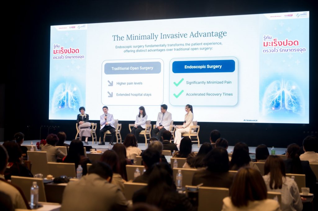 สถานการณ์ดังกล่าวยิ่งทวีความรุนแรงในพื้นที่จังหวัดเชียงใหม่และภาคเหนือ ซึ่งต้องเผชิญวิกฤตฝุ่น PM 2.5 อย่างหนักต่อเนื่องหลายปี โดยเฉพาะช่วงเดือนกุมภาพันธ์ถึงเมษายน ที่ค่าฝุ่นมักพุ่งสูงเกินค่ามาตรฐานขององค์การอนามัยโลก (WHO) หลายเท่าตัว มลพิษเหล่านี้เปรียบเสมือนสารก่อมะเร็งขนาดจิ๋วที่กระตุ้นการอักเสบเรื้อรังและทำให้เซลล์ปอดกลายพันธุ์ ส่งผลให้แม้แต่กลุ่มผู้ไม่สูบบุหรี่ก็มีความเสี่ยงสูง และที่น่ากังวลคือ มากกว่า 85% ของผู้ป่วยมักตรวจพบเมื่อโรคเข้าสู่ระยะลุกลามแล้ว เนื่องจากในระยะแรกไม่มีอาการแสดงใด ๆ เพื่อรับมือกับวิกฤตดังกล่าว กลุ่มบริษัท จอห์นสัน แอนด์ จอห์นสัน ประเทศไทย (จำกัด) ร่วมกับ เอไอเอ ประเทศไทย (AIA) โดยได้รับการสนับสนุนจาก ศูนย์ศรีพัฒน์ คณะแพทยศาสตร์ มหาวิทยาลัยเชียงใหม่ ซึ่งนับเป็นศูนย์กลางทางการรักษาที่สำคัญในเขตภาคเหนือ เดินหน้าจัดงานเสวนา รู้ทันมะเร็งปอด ตรวจไว รักษาตรงจุด” เพื่อส่งเสริมความรู้แก่ประชาชนเกี่ยวกับโรคมะเร็งปอด ตั้งแต่การป้องกัน การคัดกรองที่ถูกวิธี และทางเลือกการรักษายุคใหม่ โดยเน้นการดูแลแบบบูรณาการและยึดผู้ป่วยเป็นศูนย์กลาง พร้อมชูความสำคัญของนวัตกรรมทางเทคโนโลยี ตั้งแต่การเอกซเรย์ทรวงอกด้วยเทคโนโลยี AI และการตรวจเอกซเรย์คอมพิวเตอร์ชนิดรังสีต่ำ (Low Dose CT) ซึ่งหากพบรอยโรคในระยะแรก ผู้ป่วยสามารถเข้ารับการรักษาด้วยการผ่าตัดผ่านกล้อง (MIS) ที่มีจุดเด่นคือ แผลเล็ก บาดเจ็บน้อย และฟื้นตัวไว รวมทั้งมีโอกาสหายสูง นอกจากนี้ยังเน้นความสำคัญของการรักษาด้วยยามุ่งเป้าที่สามารถช่วยเพิ่มอัตราการรอดชีวิตและช่วยให้ผู้ป่วยมีคุณภาพชีวิตที่ดีได้ หากโรคเข้าสู่ระยะลุกลาม โดยเน้นย้ำว่า การตรวจพบไวและรักษาตรงจุด จะช่วยเพิ่มโอกาสการหายขาดจากโรคมะเร็งปอดได้สูง