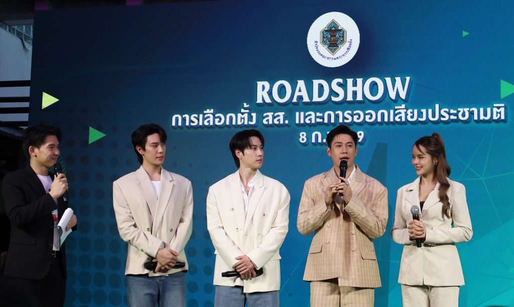 บรรยากาศอบอวลไปด้วยพลังของคนไทย เมื่อทัพศิลปินและนักแสดง นำโดย เกรท – สพล อัศวมั่นคง และ ไบร์ท – รพีพงศ์ ทับสุวรรณ นักแสดงจาก GMMTV, แจม – รชตะ หัมพานนท์ นักแสดงจากช่องวัน31, มิ้วส์ – อรภัสญาน์ สุกใส ศิลปินจากจีเอ็มเอ็ม มิวสิค เสริมทัพด้วย มอส – ปฏิภาณ ปฐวีกานต์ และ แพรซัน – แพรงาม สุนทระศานติก ที่แท็กทีมกันมาปล่อยพลังความสนุกในงาน “Roadshow การเลือกตั้ง สส. และการออกเสียงประชามติ 69” ซึ่งจัดโดย สำนักงานคณะกรรมการการเลือกตั้ง (กกต.) เชิญชวนคนไทยออกมาใช้สิทธิเลือกตั้งสมาชิกสภาผู้แทนราษฎร (สส.) และออกเสียงประชามติ ในวันอาทิตย์ที่ 8 กุมภาพันธ์ 2569