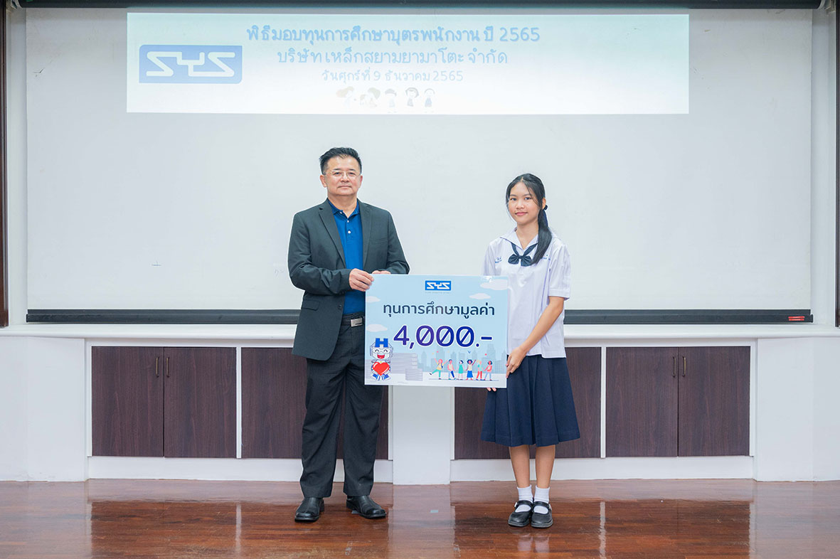 บริษัท ฯ จึงได้จัดโครงการมอบทุนการศึกษาระดับประถมศึกษาให้กับเด็กนักเรียนจากสถาบันการศึกษา 10 แห่งในพื้นที่จังหวัดระยอง ซึ่งพิธีมอบทุนการศึกษาจัดขึ้น ณ บริษัท เหล็กสยามยามาโตะ จำกัด (โรงงานมาบตาพุด) โดยมี นายทรากุน อาจคุ้มวงษ์ ประธานคณะกรรมการความรับผิดชอบต่อสังคม (CSR) เป็นผู้มอบ เมื่อเร็วๆนี้