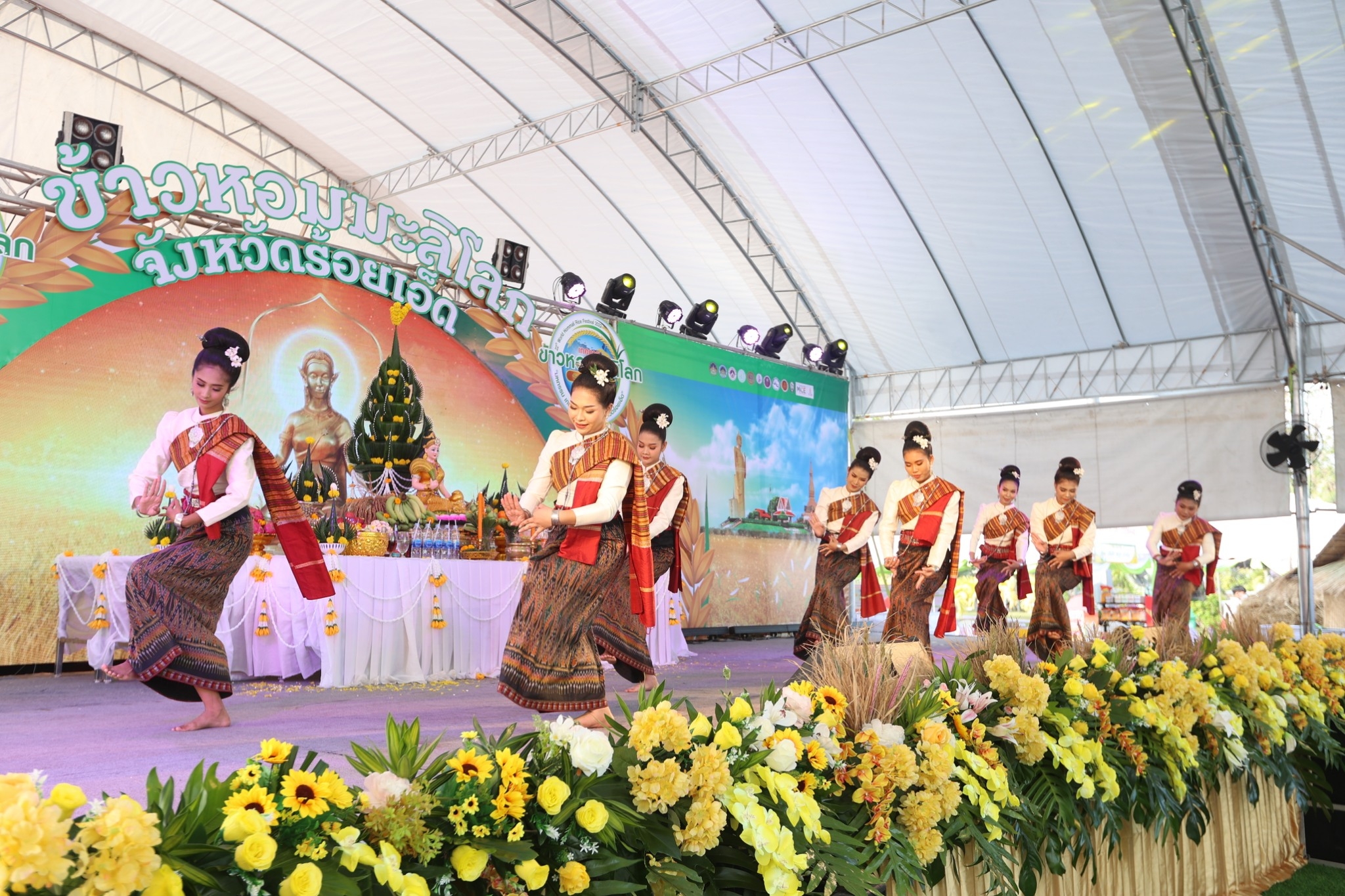 ตลอดพื้นที่ของการจัดงาน มีการจัดแสดงสินค้านิทรรศการเทคโนโลยี นวัตกรรม การฝึกอบรมหลักสูตรการแปรรูปผลิตภัณฑ์จากข้าวหอมมะลิ การเสวนาวิชาการในด้านการรักษาคุณภาพ และความหอมของข้าวหอมมะลิจังหวัดร้อยเอ็ด และเกษตรกรรมยั่งยืน จากกระทรวงอุตสาหกรรม กระทรวงการอุดมศึกษา วิทยาศาสตร์ วิจัย และนวัตกรรม และกระทรวงเกษตรและสหกรณ์ การจำหน่ายข้าวหอมมะลิ ตลอดจนผลิตภัณฑ์จากข้าวหอมมะลิ และสินค้าเกษตรต่าง ๆ จากผู้ประกอบการ องค์กรเกษตรกร วิสาหกิจชุมชน กลุ่ม OTOPกลุ่มสหกรณ์การเกษตร Smart Farmer, Young Smart Famer และการจำหน่ายปัจจัยการผลิต นวัตกรรม ตลอดจนเทคโนโลยี การผลิตและการแปรรูปข้าวของผู้ประกอบการธุรกิจการเกษตร การสาธิตการใช้เทคโนโลยีนวัตกรรมในการผลิตข้าวในยุคดิจิตัล ซึ่งนอกจากจะนำเสนอรูปแบบการผลิตแบบวิถีชาวทุ่งกุลาร้องไห้แบบดั้งเดิม ยังมีการนำเสนอการใช้เทคโนโลยีต่างๆ ในการผลิต เช่น การใช้โดรนการเกษตร และการแปรรูปผลิตภัณฑ์ด้วยเครื่องจักรของอุตสาหกรรม