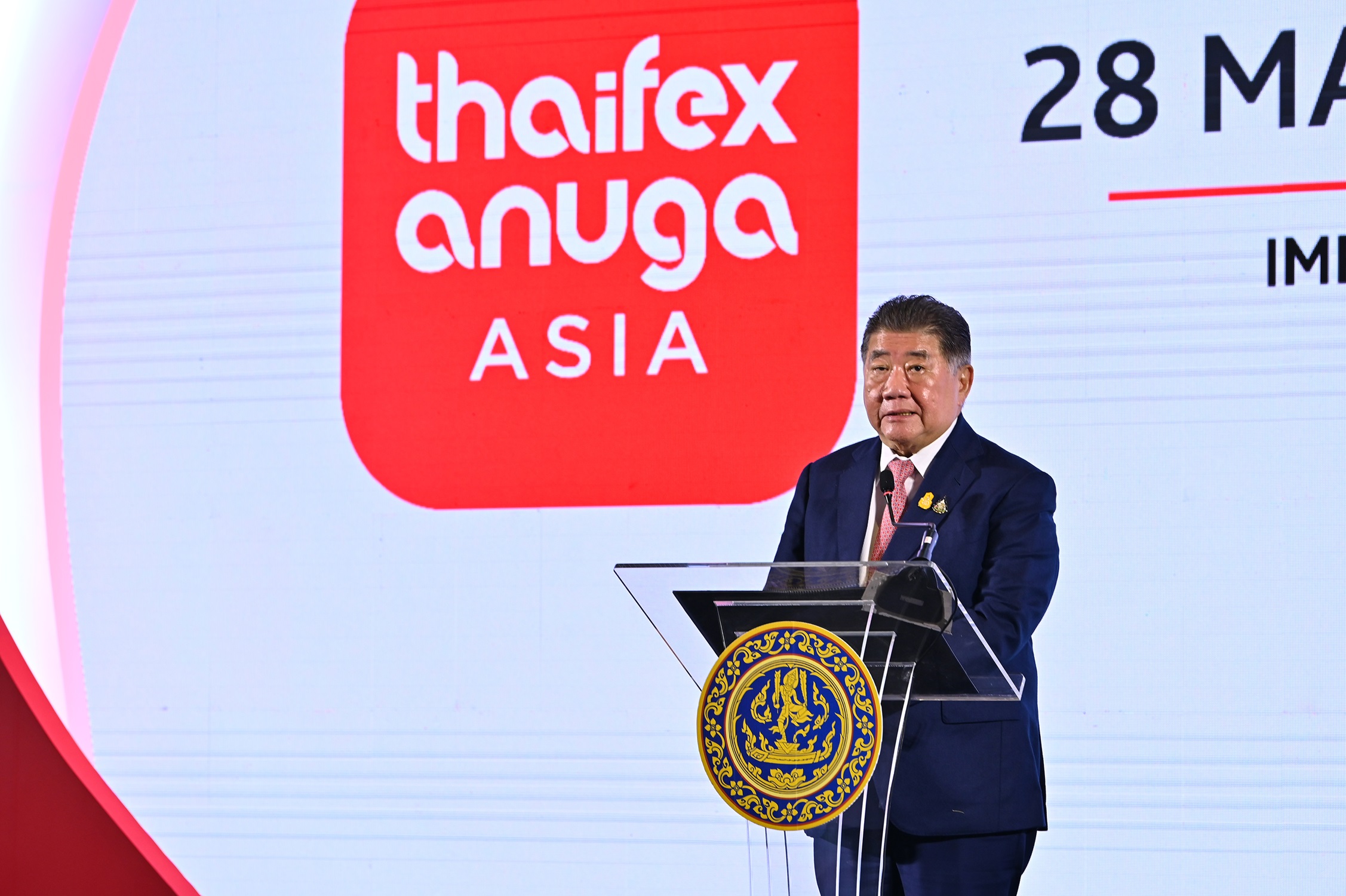 วันที่ 28 พฤษภาคม 2567 เวลา 15.00 น. ที่ศูนย์แสดงสินค้าและการประชุมอิมแพ็ค เมืองทองธานี นายภูมิธรรม เวชยชัย รองนายกรัฐมนตรีและรัฐมนตรีว่าการกระทรวงพาณิชย์ เป็นประธานเปิดงาน THAIFEX-ANUGA ASIA 2024 ซึ่งเป็นงานแสดงสินค้าอาหารและเครื่องดื่มที่ยิ่งใหญ่และครบวงจรที่สุดแห่งเอเชีย เป็นเวทีสำคัญของไทยในการสร้างพันธมิตรระดับโลกและยกระดับอุตสาหกรรมอาหารและเครื่องดื่มไทยเพิ่ม GDP ประเทศ ให้เป็นศูนย์กลางทางด้านอาหาร โดยมี นายนภินทร ศรีสรรพางค์ รัฐมนตรีช่วยว่าการกระทรวงพาณิชย์ นายสุชาติ ชมกลิ่น รัฐมนตรีช่วยว่าการกระทรวงพาณิชย์ เอกอัครราชทูตจากประเทศต่าง ๆประจำประเทศไทย นายสนั่น อังอุบลกุล ประธานกรรมการหอการค้าไทยและสภาหอการค้าแห่งประเทศไทย นายเจอราล์ด บูเซอ ประธานและประธานเจ้าหน้าที่บริหาร โคโลญเมสเซ่ ผู้แทนหน่วยงานภาครัฐและเอกชนร่วมด้วย