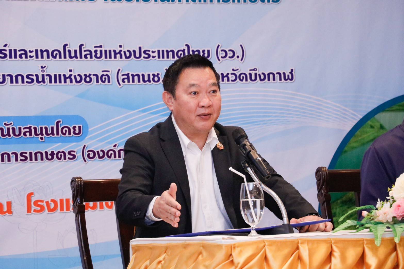 นางสาวกุลวรา โชติพันธุ์โสภณ รองผู้อำนวยการสำนักงานพัฒนาการวิจัยการเกษตร กล่าวในฐานะหน่วยงานสนับสนุนทุนว่า สวก. เป็นผู้นำในการบริหารการวิจัยการเกษตร เพื่อสร้างความเข้มแข็งของภาคการเกษตรอย่างยั่งยืน รวมทั้งส่งเสริม สนับสนุน และพัฒนาการวิจัยการเกษตร พัฒนานักวิจัยการเกษตรมืออาชีพเพิ่มขึ้น พร้อมทั้งมีระบบเชื่อมโยงข้อมูลงานวิจัยด้านการเกษตรที่สามารถนำไปใช้ประโยชน์ได้ การดำเนินโครงการฯ ร่วมกันในครั้งนี้เชื่อมั่นว่าจะสร้างความยั่งยืนให้กับจังหวัดบึงกาฬและพื้นที่ใกล้เคียง อันจะนำไปสู่ความยั่งยืนในการบำบัดและฟื้นฟูแหล่งน้ำในพื้นที่ชุมชน และเป็นโมเดลต้นแบบในการต่อยอดสู่การดำเนินงานในพื้นที่อื่นๆ ของประเทศต่อไป