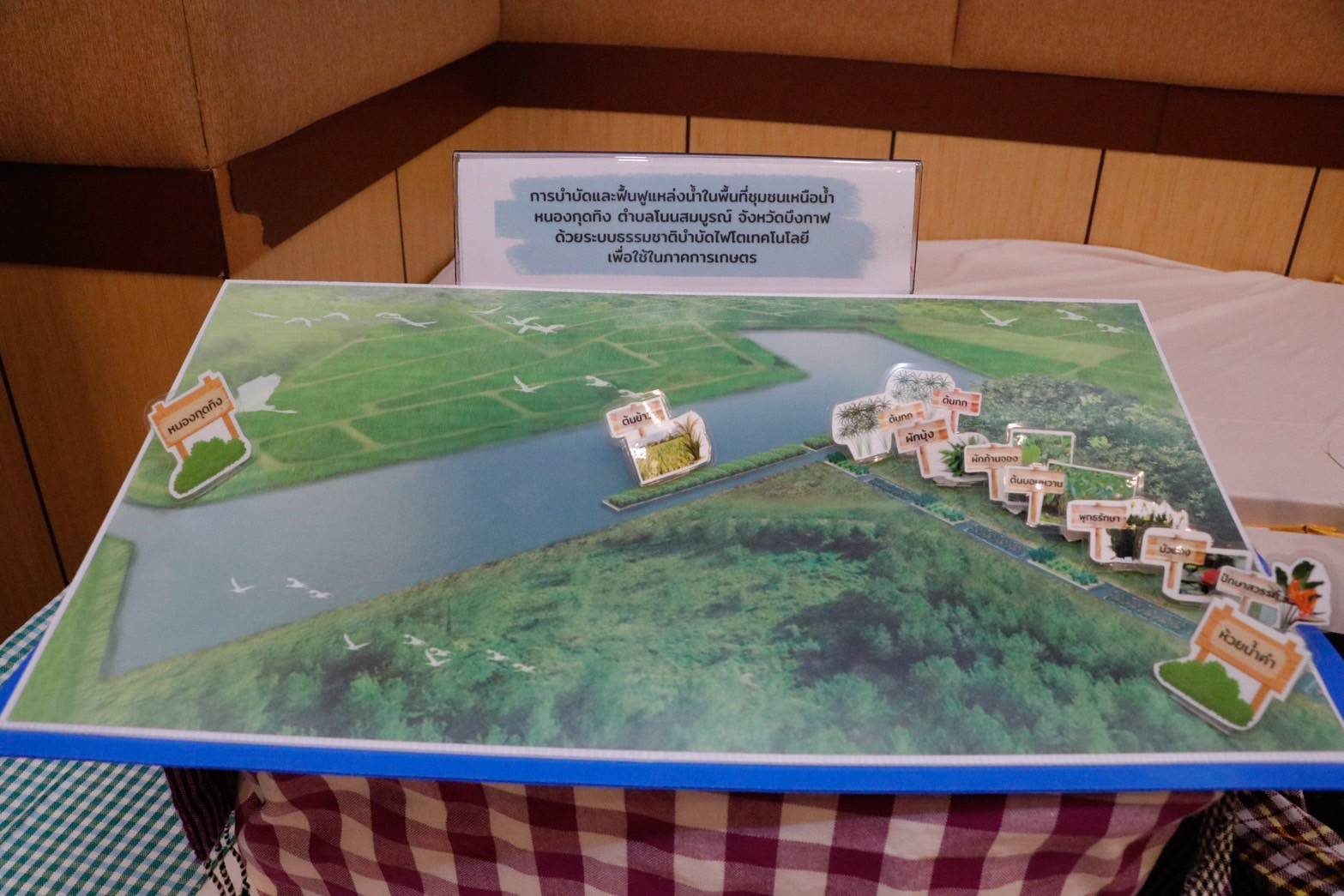 นายจุมพฏ วรรณฉัตรสิร ผู้ว่าราชการจังหวัดบึงกาฬ ผศ.ดร.วีรชัย อาจหาญ ผู้ว่าการ สถาบันวิจัยวิทยาศาสตร์และเทคโนโลยีแห่งประเทศไทย (วว.) กระทรวงการอุดมศึกษา วิทยาศาสตร์ วิจัยและนวัตกรรม (อว.) ดร.สุรสีห์ กิตติมณฑล เลขาธิการสำนักงานทรัพยากรน้ำแห่งชาติ (สทนช.) นางสาวกุลวรา โชติพันธุ์โสภณ รองผู้อำนวยการ สำนักงานพัฒนาการวิจัยการเกษตร (องค์กรมหาชน) หรือ สวก. ในฐานะหน่วยงานสนับสนุนทุน ร่วมเปิดตัว “โครงการการบำบัดและฟื้นฟูแหล่งน้ำในพื้นที่ชุมชนเหนือน้ำหนองกุดทิง ตำบลโนนสมบูรณ์ จังหวัดบึงกาฬ ด้วยระบบธรรมชาติบำบัดไฟโตเทคโนโลยี เพื่อใช้ในภาคการเกษตร” พร้อมสร้างการรับรู้การใช้ประโยชน์กับหน่วยงานในพื้นที่ หน่วยงานการศึกษาและภาคประชาชน โดยมีพื้นที่เป้าหมายดำเนินงาน 2,000 ตารางเมตร เพื่อลดปัญหาวัชพืชในแหล่งน้ำ ให้มีน้ำเพียงพอสำหรับเกษตรกรรมในพื้นที่ พร้อมส่งเสริมและสร้างศักยภาพให้ชุมชนมีส่วนร่วมในการดูแลและรักษาแหล่งน้ำให้สะอาดอย่างยั่งยืน