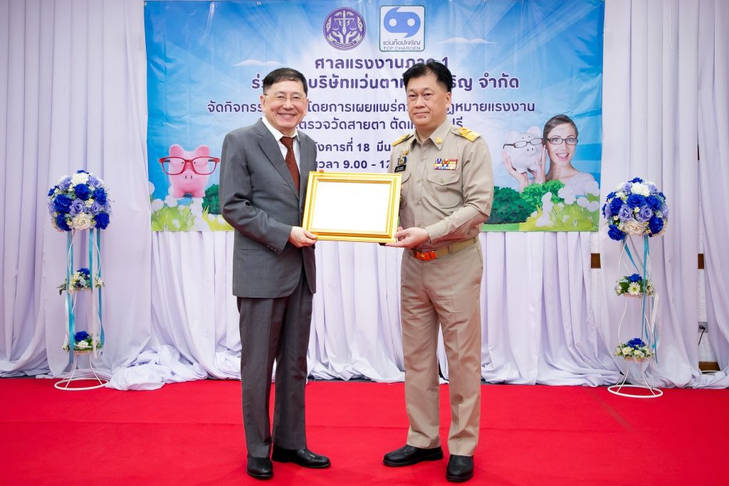 แว่นท็อปเจริญ นำโดย นายนพศักดิ์ ตรีพรชัยศักดิ์ ประธานเจ้าหน้าที่บริหาร แว่นท็อปเจริญ – บริษัท ร่วมเจริญพัฒนา จำกัด (มหาชน) เข้ารับประกาศเกียรติคุณในฐานะผู้ให้การสนับสนุนช่วยเหลือกิจกรรมและโครงการอันเป็นประโยชน์แก่ทางราชการจากนายปฏิกรณ์ คงพิพิธ อธิบดีผู้พิพากษาศาลแรงงานภาค 1 และนายบัญชา เชาวรินทร์ ผู้ว่าราชการจังหวัดสระบุรี