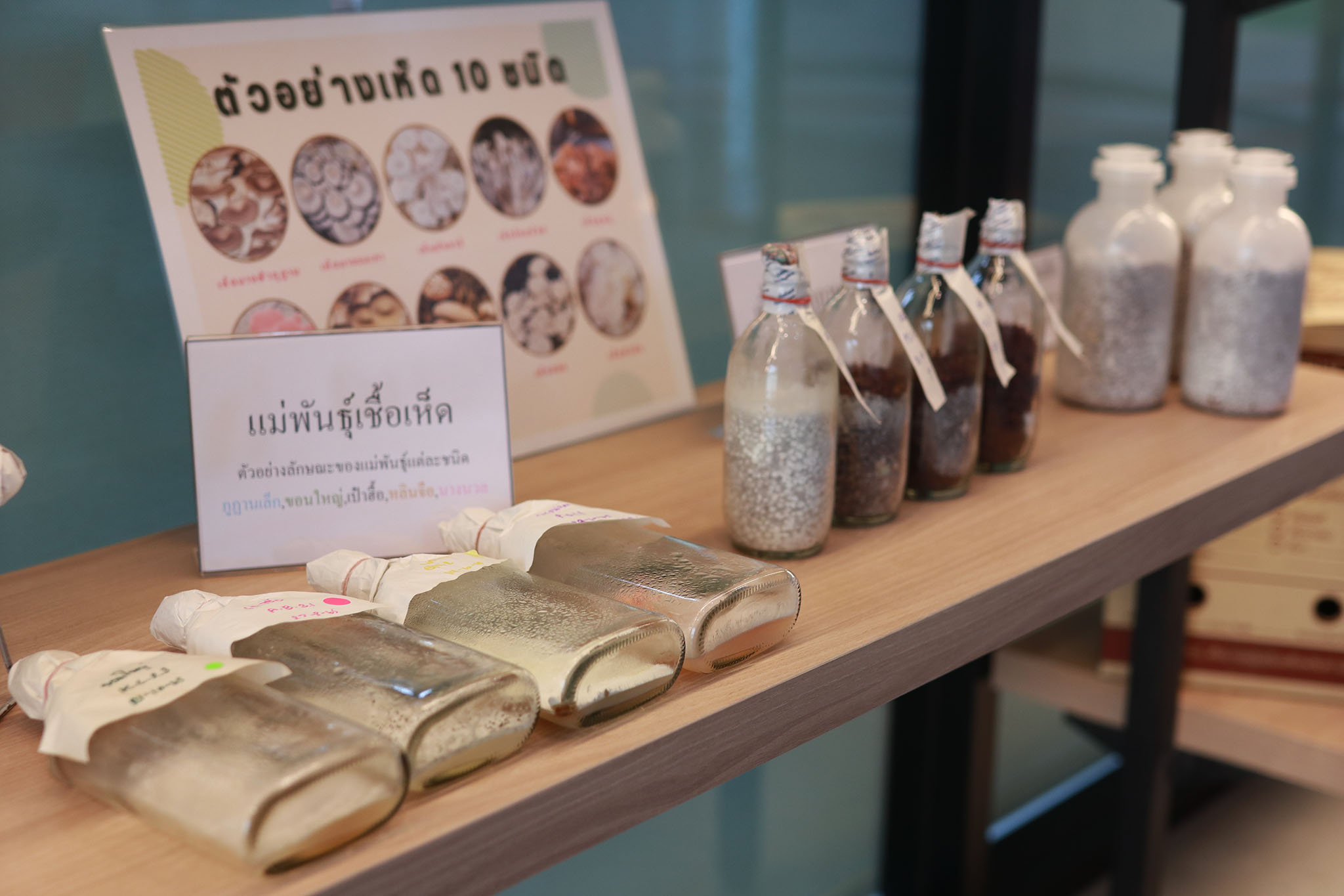 - การผลิตเชื้อเห็ดเหลว เป็นนวัตกรรมที่คิดค้นขึ้นมาใช้กับขวดพลาสติก การผลิตหัวเชื้อต้องเลี้ยงเชื้อบนอาหารวุ้น PDA แล้วตัดชิ้นออกมาเพื่อบรรจุลงไปในขวด ซึ่งการตัดและใส่ขวดชิ้นหนึ่งใช้เวลาค่อนข้างนาน ลัลณ์ลลิลจึงพัฒนาตัววุ้นให้กลายเป็นเชื้อน้ำ แล้วก็ใช้เข็มฉีดยาดูดขึ้นมาเพื่อบรรจุลงขวด ลดเวลาในการผลิตและเพิ่มความสะดวกของลูกค้าในการใช้งานมากขึ้น