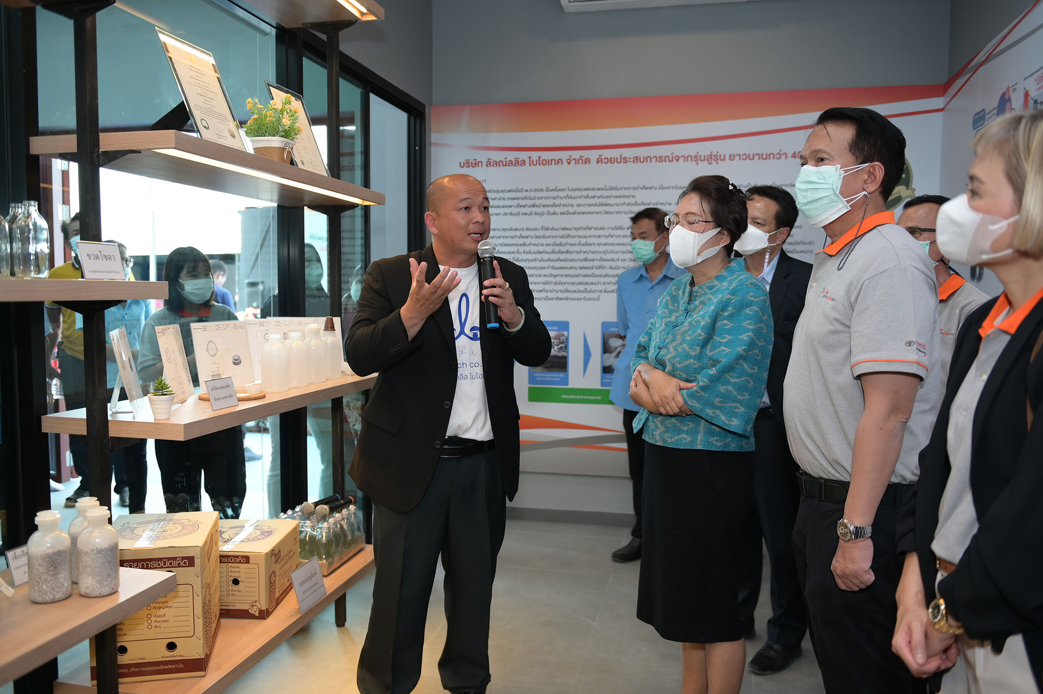 คุณสุรภูมิ อุดมวงศ์ รองกรรมการผู้จัดการใหญ่ บริษัท โตโยต้า มอเตอร์ ประเทศไทย จำกัด คุณศิริวรรณ บุญวิสุทธิ์ กรรมการผู้จัดการบริษัท โตโยต้าสระบุรี จำกัด และคุณอภิศักดิ์ แซ่หลี กรรมการผู้จัดการ บริษัท ลัลณ์ลลิลไบโอเทค จำกัด ร่วมเปิด “ศูนย์การเรียนรู้โตโยต้า ธุรกิจชุมชนพัฒน์ แห่งที่ 6” ณ บริษัท ลัลณ์ลลิลไบโอเทค จำกัด จังหวัดสระบุรี เมื่อวันศุกร์ที่ 11 พฤศจิกายน 2565 ที่ผ่านมา