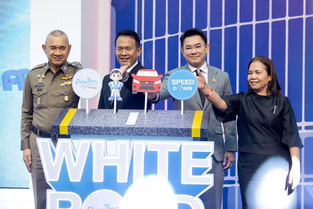 บริษัท โตโยต้า มอเตอร์ ประเทศไทย จำกัด ให้ความสำคัญในการส่งเสริมความปลอดภัย และลดอุบัติเหตุบนท้องถนน ภายใต้โครงการ “โตโยต้า ถนนสีขาว” ซึ่งดำเนินงานอย่างต่อเนื่องมากว่า 38 ปี  ครอบคลุมในทุกมิติ “คน รถ ถนน และสิ่งแวดล้อม” โดยเฉพาะด้าน “คน” ที่เน้นการปลูกฝังและถ่ายทอดองค์ความรู้แก่ผู้ใช้รถใช้ถนนในทุกช่วงวัย ผ่านการทำกิจกรรมอย่างต่อเนื่อง ควบคู่กับการสื่อสารภายใต้แนวคิด “Save ชีวิต หยุดขับเร็ว” เน้นย้ำอันตรายจากการใช้ความเร็ว ซึ่งเป็นสาเหตุหลักของอุบัติเหตุบนท้องถนน