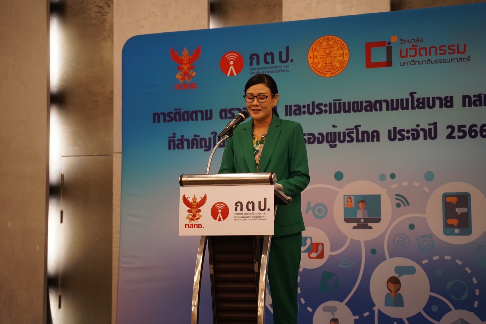 วันที่ 26 กรกฎาคม 2566 ที่ โรงแรมเฮอริเทจ จังหวัดเชียงราย นางสาวอารีวรรณ จตุทอง กรรมการติดตามและประเมินผลการปฏิบัติงาน (กตป.) ด้านการคุ้มครองผู้บริโภค เป็นประธานเปิดการประชุมรับฟังความคิดเห็นสาธารณะ (Public Hearing) เรื่อง เงื่อนไข/มาตรการเพื่อการคุ้มครองผู้บริโภค ภายหลังการรวมธุรกิจระหว่างบริษัท ทรู คอร์ปอเรชั่น จำกัด (มหาชน) (ทรู) และบริษัท โทเทิ่ล แอ็คเซ็ส คอมมูนิเคชั่น จำกัด (มหาชน) (ดีแทค) ซึ่งจัดขึ้นโดย วิทยาลัยนวัตกรรม มหาวิทยาลัยธรรมศาสตร์ ในฐานะที่ปรึกษาโครงการเพื่อติดตาม ตรวจสอบ และประเมินผลตามนโยบาย กสทช. ที่สำคัญในด้านการคุ้มครองผู้บริโภค ประจำปี 2566