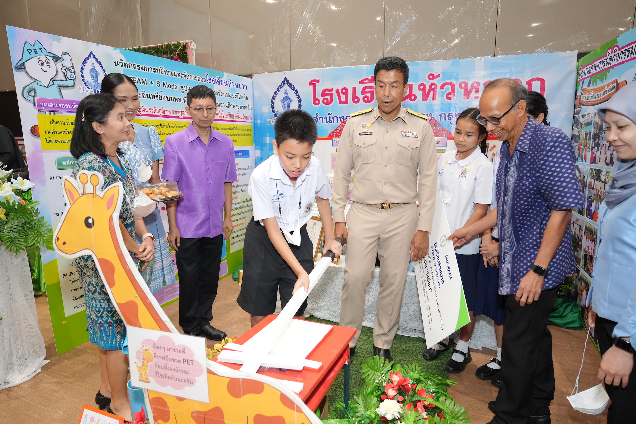 น้องๆ เหล่านี้กำลังอธิบายถึงผลงานของโรงเรียนที่ได้รับประกาศนียบัตรระดับ “ดีเยี่ยม” ซึ่งเป็นหนึ่งใน 20 โรงเรียนที่ได้รับรางวัลดีเยี่ยมในพิธีปิดโครงการบริหารจัดการขยะพลาสติกอย่างยั่งยืนในโรงเรียนสังกัดกรุงเทพมหานคร ภายใต้ความร่วมมือระหว่างสำนักการศึกษา กรุงเทพมหานคร และบริษัท อินโดรามา เวนเจอร์ส จำกัด (มหาชน) บริษัทเคมีภัณฑ์ชั้นนำระดับโลกที่ดำเนินธุรกิจอย่างยั่งยืน ผู้ผลิตเม็ดพลาสติก PET และรีไซเคิล PET รายใหญ่ที่สุดของโลก